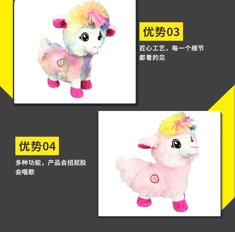 Забавные игрушки, альпаки, которые встряхивают головы и скручивают ягодицы, плюшевые электрические игрушки для детских подарков мягкая игрушка животное Размеры: 25*20*12 см Вес: около 0,35 кг Батарея: требуется 3 батарейки типа АА (не входят в комплект) Тип: мягкая плюшевая игрушка для куклы Наполнитель: хлопок PP Метод очистки: протрите влажным полотенцем и высушите естественным образом Пользователь: подарок на день рождения, новогодний подарок, приз для детей