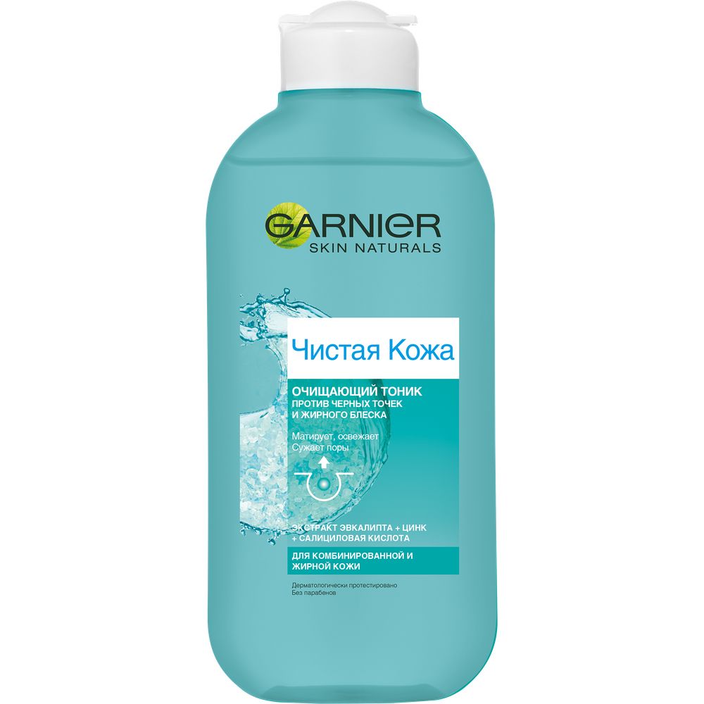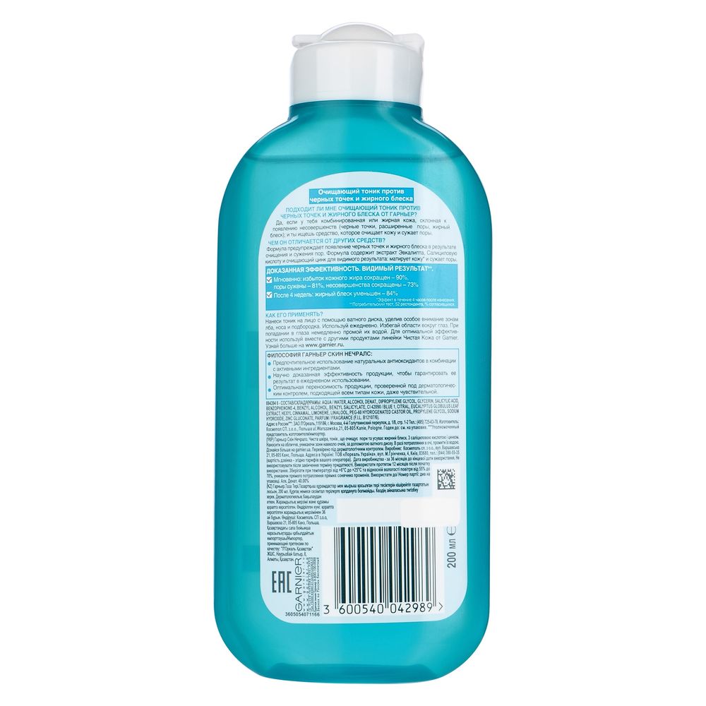 Garnier Очищающий тоник для лица "Чистая кожа" против черных точек и жирного блеска с абсорбирующим Перлитом, для комбинированной и жирной кожи, 200 мл