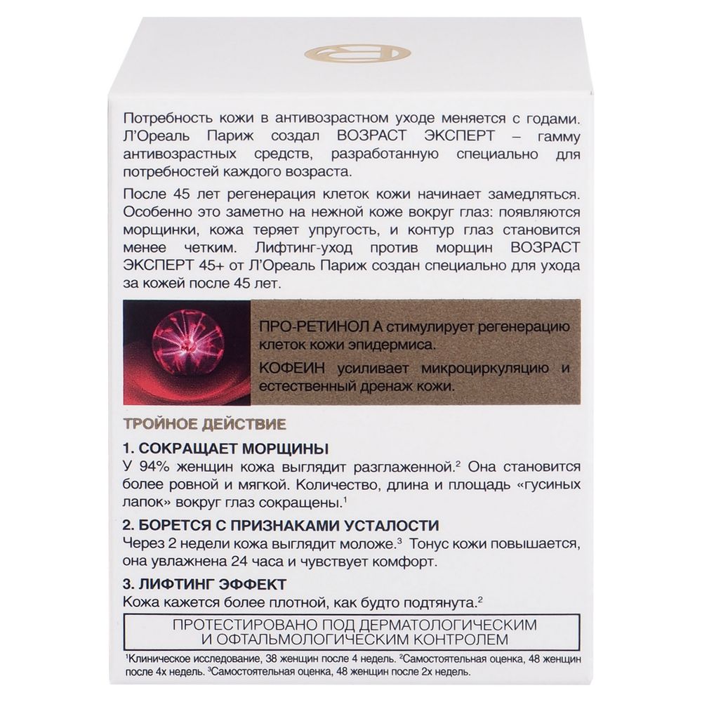 L'Oreal Paris Крем вокруг глаз "Возраст эксперт 45+" против морщин, лифтинг-уход, 15 мл
