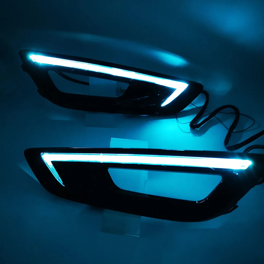 The White Yellow Blue has three functions, DRL and the turn signals and night blue.When youare driving straight, it lights up white. When you turn it flashing yellow light.When you turnon headlight,it lights up blue.