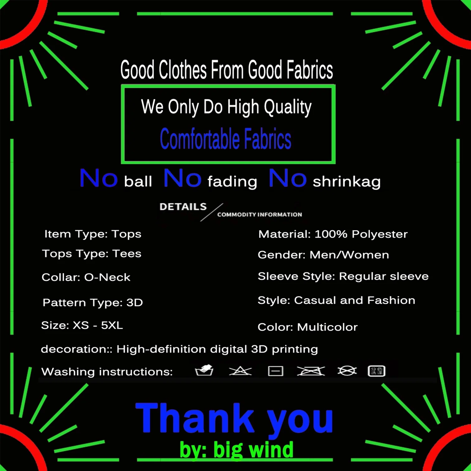 Материал: 100% полиэстер, который не мнется, дышащий, хорошо впитывает влагу, хорошая гибкость, комфорт, удобство, легкость в использовании.