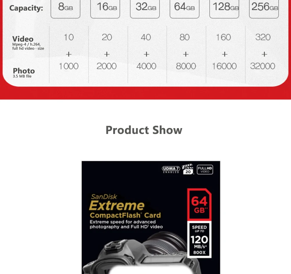 1.Высокое качество: Sandisk CF card 32 Гб 64 Гб 128 Гб карта памяти Extreme UDMA7 120 МБ/с./с компактный флеш-накопитель для камеры.