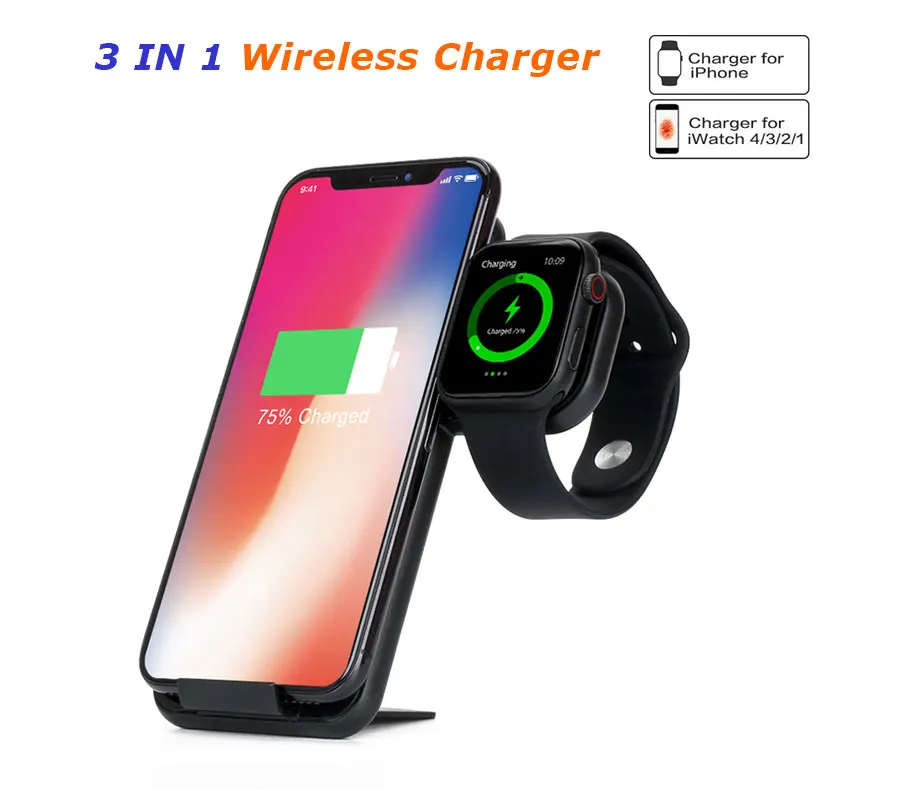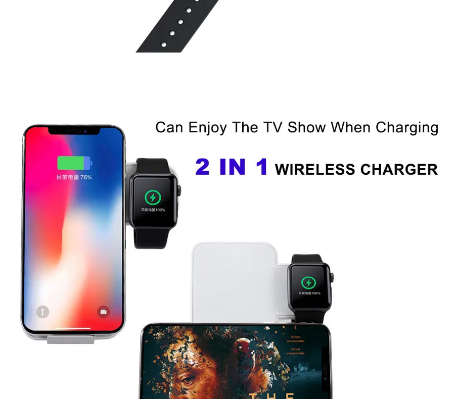 Особенность: одна зарядная док-станция безопасно заряжает для Apple Watch и для устройств с поддержкой Qi одновременно используется для беспроводной зарядки аккумулятора или беспроводного источника питания.