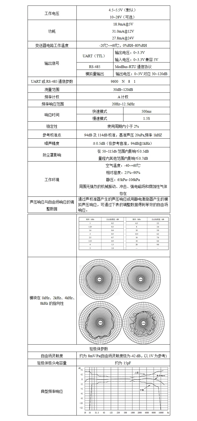n High performance pre polarized back electret condenser microphone,Wide dynamic range、Stable performance。