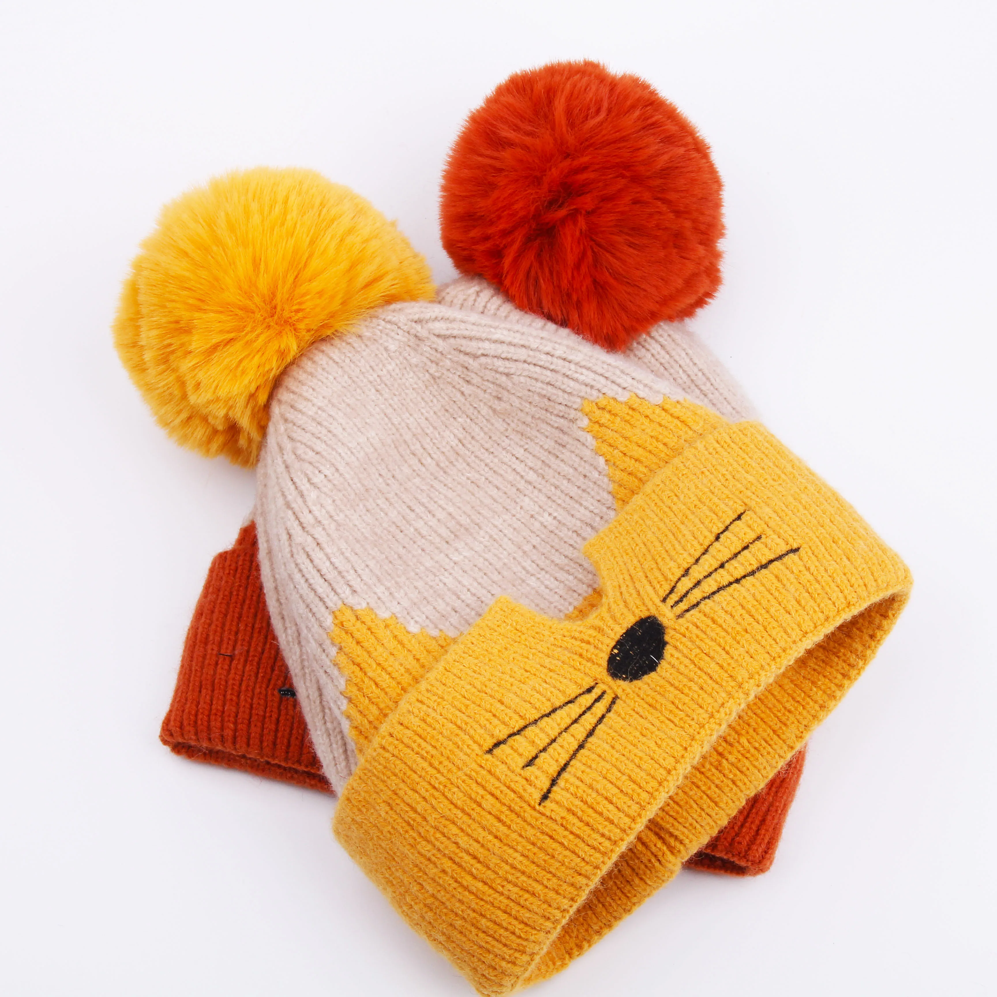 Брендовая простая Шапка-бини из кроличьего меха для женщин, зимняя шапка Skullies, теплая Милая шапка с кошачьим лицом, женская вязаная шапка с буквенным принтом, шапка s