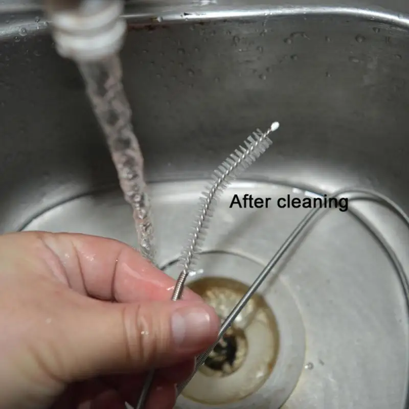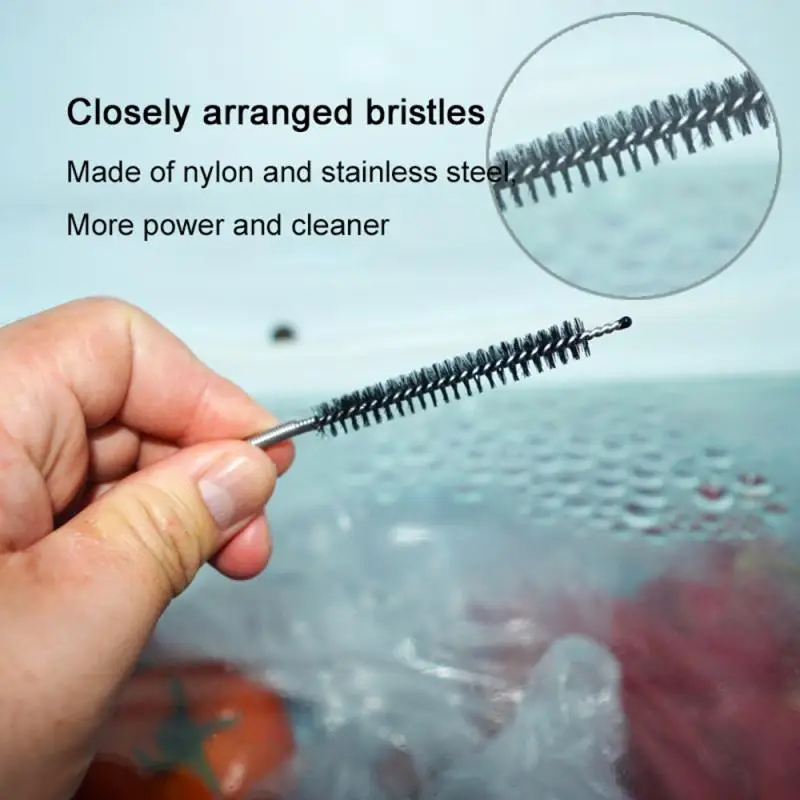 Трубчатая щетка Гибкая даже для работы с изогнутыми трубками (под углом менее 90 градусов). Нейлоновые щетинки собирают и удаляют слив, скопление пищи, жира и мусор; Достаточно прочные для длительного использования.