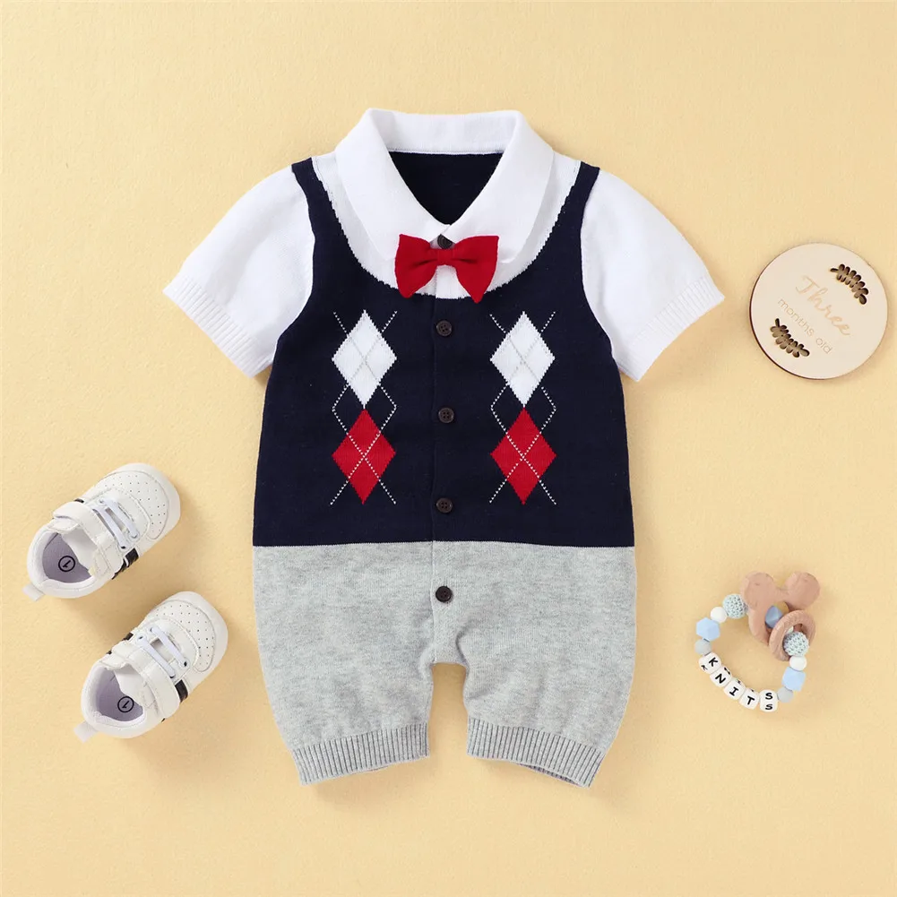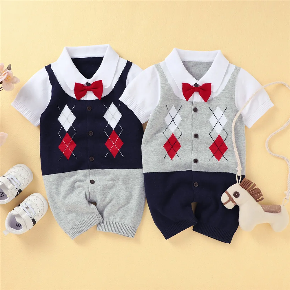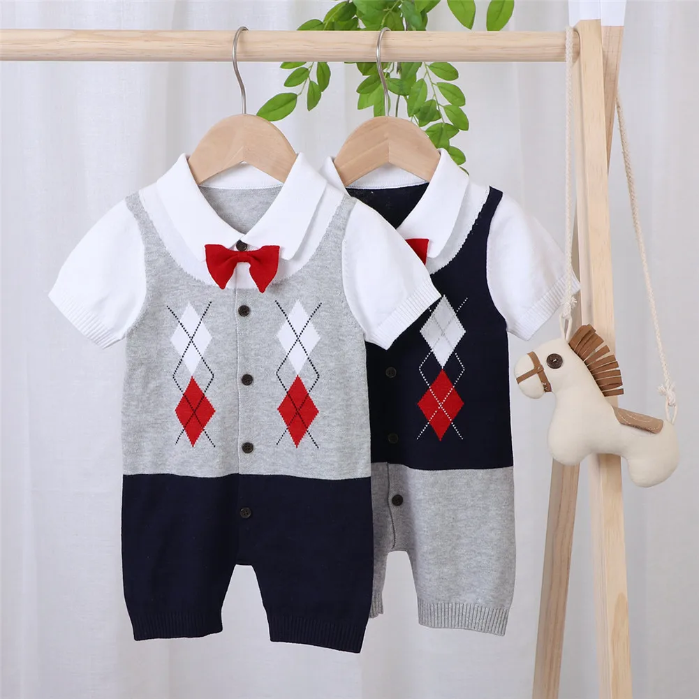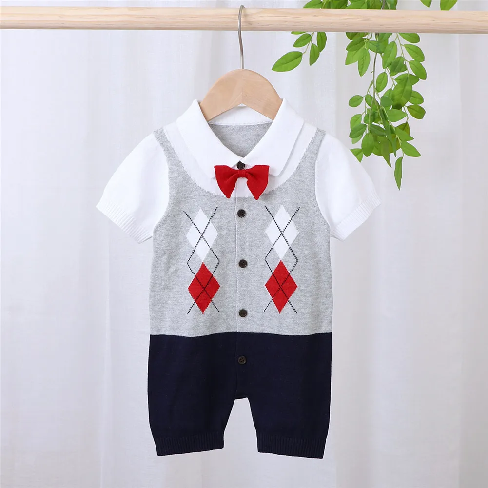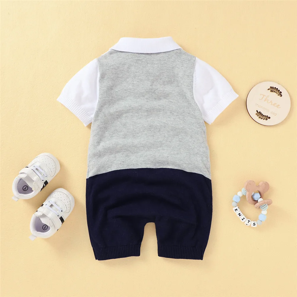 Комбинезон для маленьких мальчиков; Хлопковый комбинезон с короткими рукавами и пуговицами; Трикотажный комбинезон с воротником в стиле пэчворк; Комбинезон в стиле пэчворк