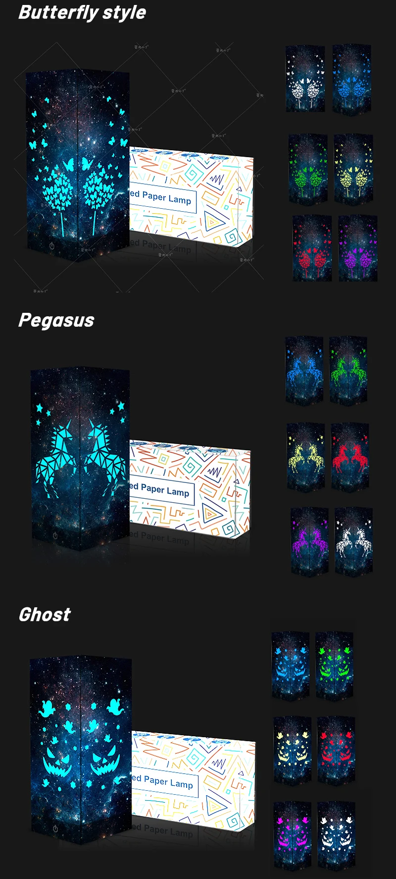 Лампа для создания деликатного освещения, интегрированный в традиционную китайскую бумажную вырезку; Пусть красочные огни проецируют различные узоры в вашей комнате; Романтическая обстановка для вас и вашего супруга/ребенка; идеальный подарок на день Святого Валентина/Хэллоуин/Рождество/День Благодарения! Так много рисунков на ваш выбор; Вы также можете настроить изделия по своему любимому рисунку; Если у вас есть какие-либо требования, свяжитесь с нами; Очень подходит для клиентов с прямыми поставками!