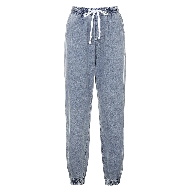 Модные новые джинсы с высокой талией женские свободные синие повседневные