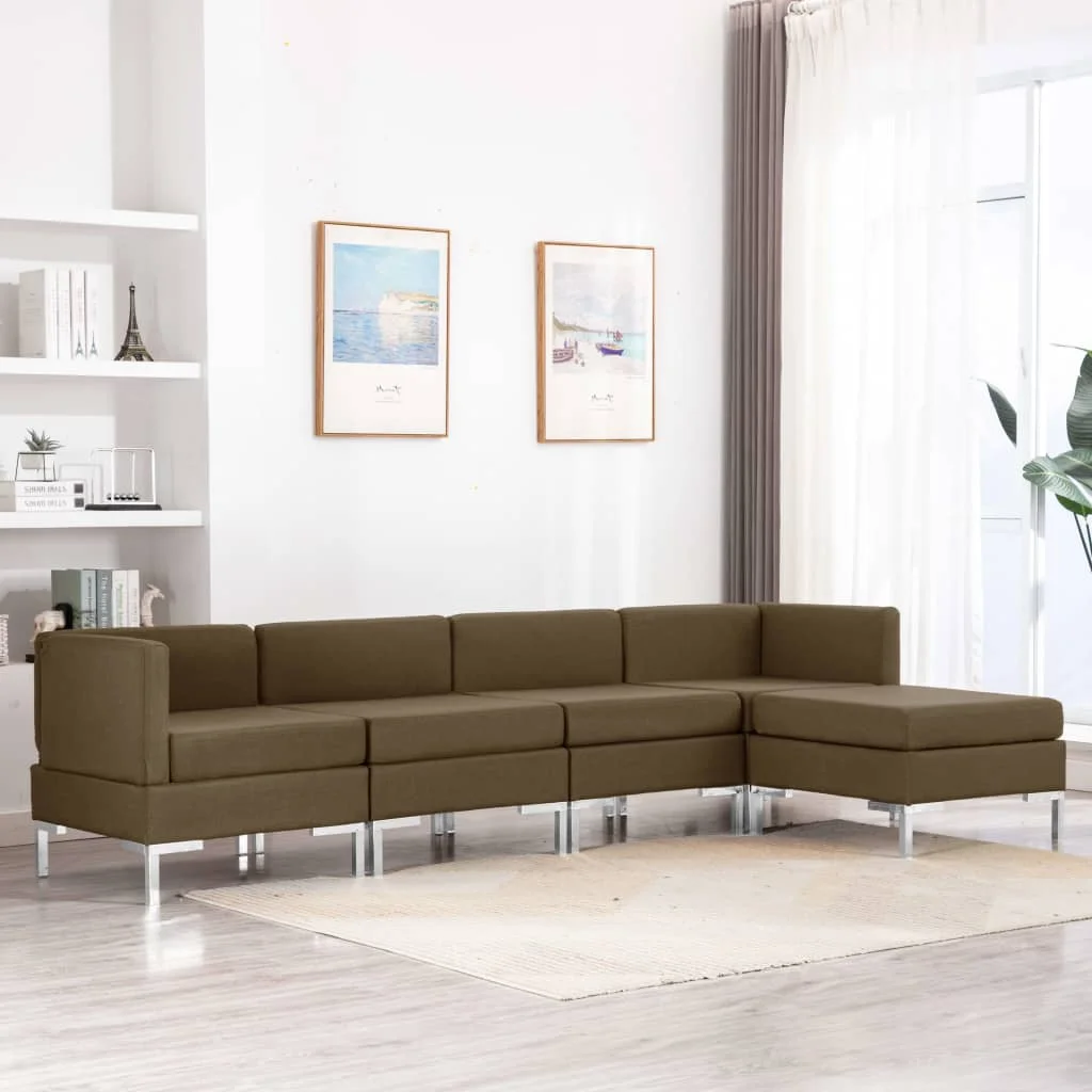 Материал: ткань (100% полиэстер), МДФ Общие размеры: 260x130x65 см (Ш x Г x В) Размеры углового дивана: 65x65x65 см (Ш x Г x В) Размеры сиденья: 58x58 см (Ш x Г) Размеры среднего дивана: 65x65x65 см (Ш x Г x В) Размер сиденья: 65x58 см (Ш x Г) Высота сиденья от земли: 42 см Размеры подставки для ног: 65x65x42 см (Ш x Г x В) Толщина подушки: 12 см Требуется сборка В комплект поставки входит: 2 x центральный диван 2 х угловой диван 1 x подставка для ног 5 x подушка сиденья