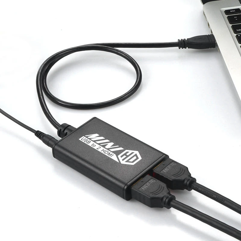 2. USB 3,0 к двойному адаптеру HDMI: Этот адаптер USB к HDMI может расширить 2 независимых дисплея через порт USB 3,0 компьютера, который может быть расширен до того же дисплея sn или другого дисплея sns, совместим с портом USB2.0 компьютера.