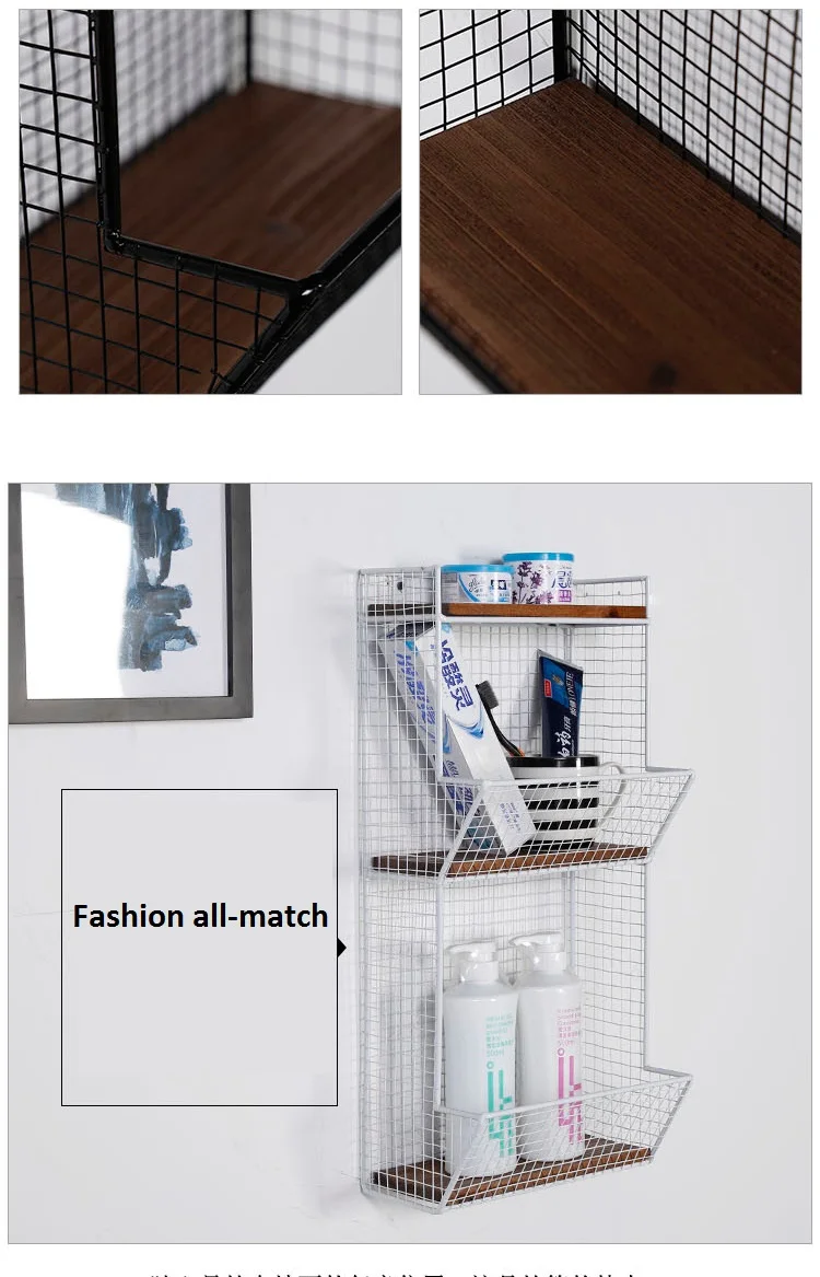 Punch-Free Solid Wood Magazine Rack Wall Hanging Wrought Iron Wall Bookshelf Kitchen Bathroom Three-Layer Shelf