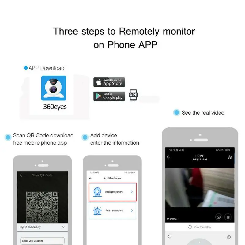 Удаленный мониторинг приложений и двухстороннее аудио-с приложением, вы можете удаленно ваш дом в режиме реального времени. Встроенный микрофон и динамик для одновременного разговора и прослушивания музыки. Даже на расстоянии тысячи миль вы можете увидеть свой дом и поговорить с семьями. Встроенная функция шумоподавления микрофон для четкого отображения 2-полосная аудио опыт.