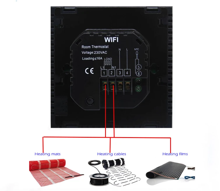 2. Термостат TGT70WIFI-EP используется для управления нагревательными приборами, такими как нагревательные пленки, нагревательные маты, нагревательные кабели и т. д.