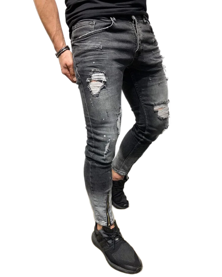 Мужские джинсы с вышивкой в стиле ретро рваные узкие потертые винтажные