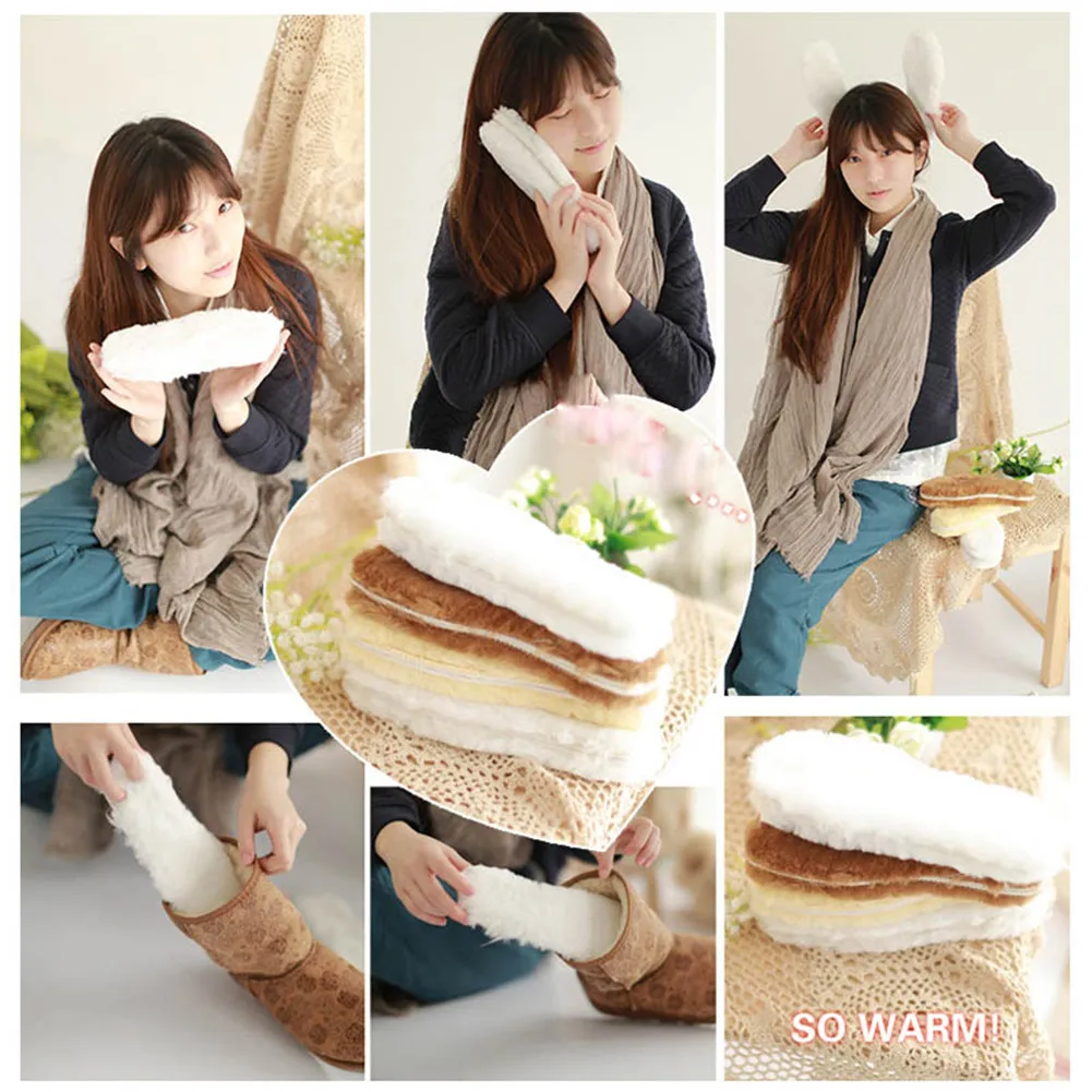 Теплые стельки с подогревом подошвы для обуви зимние толстые стельки теплые стельки из искусственной шерсти дышащие зимние сапоги меховые стельки
