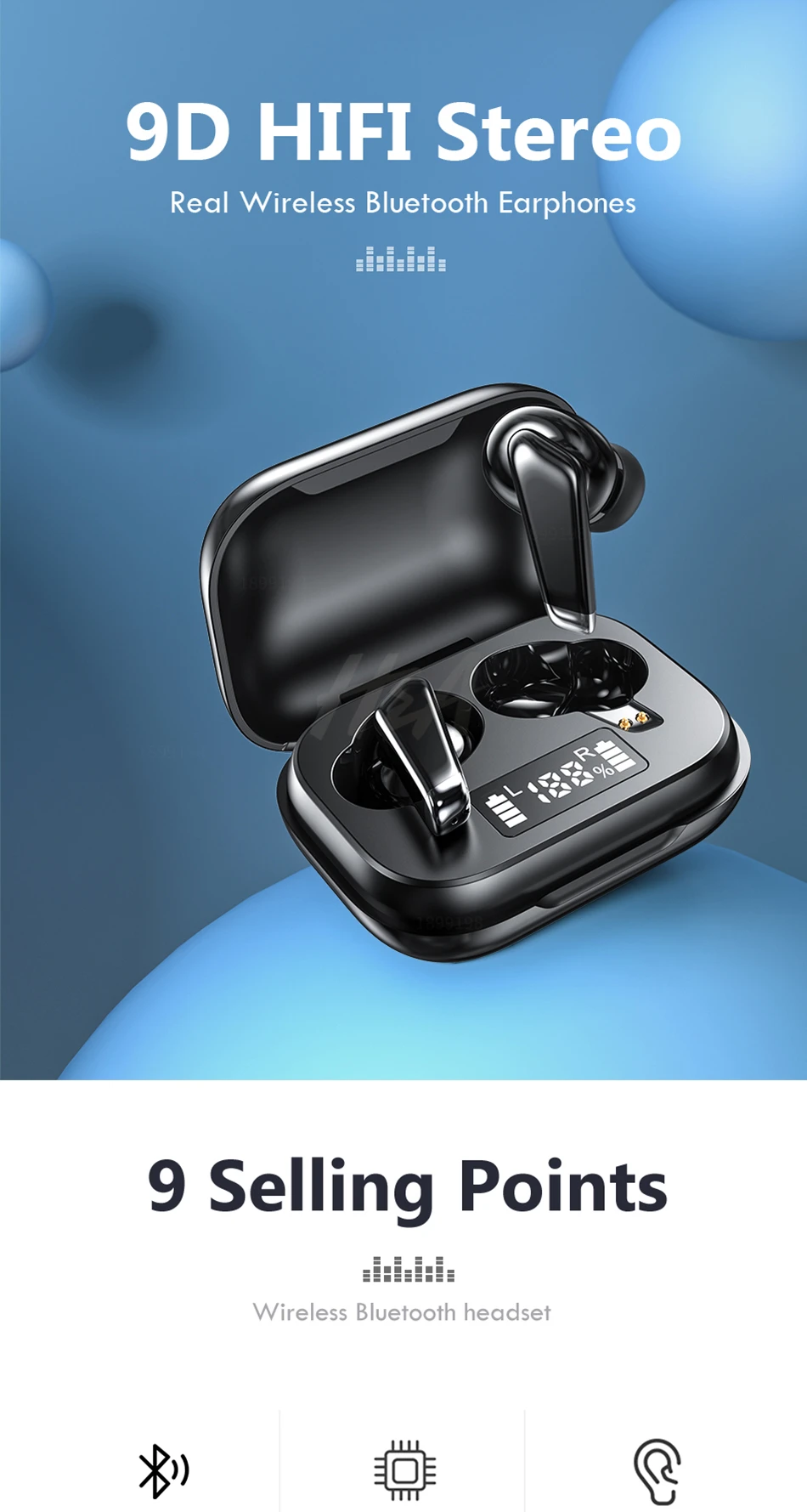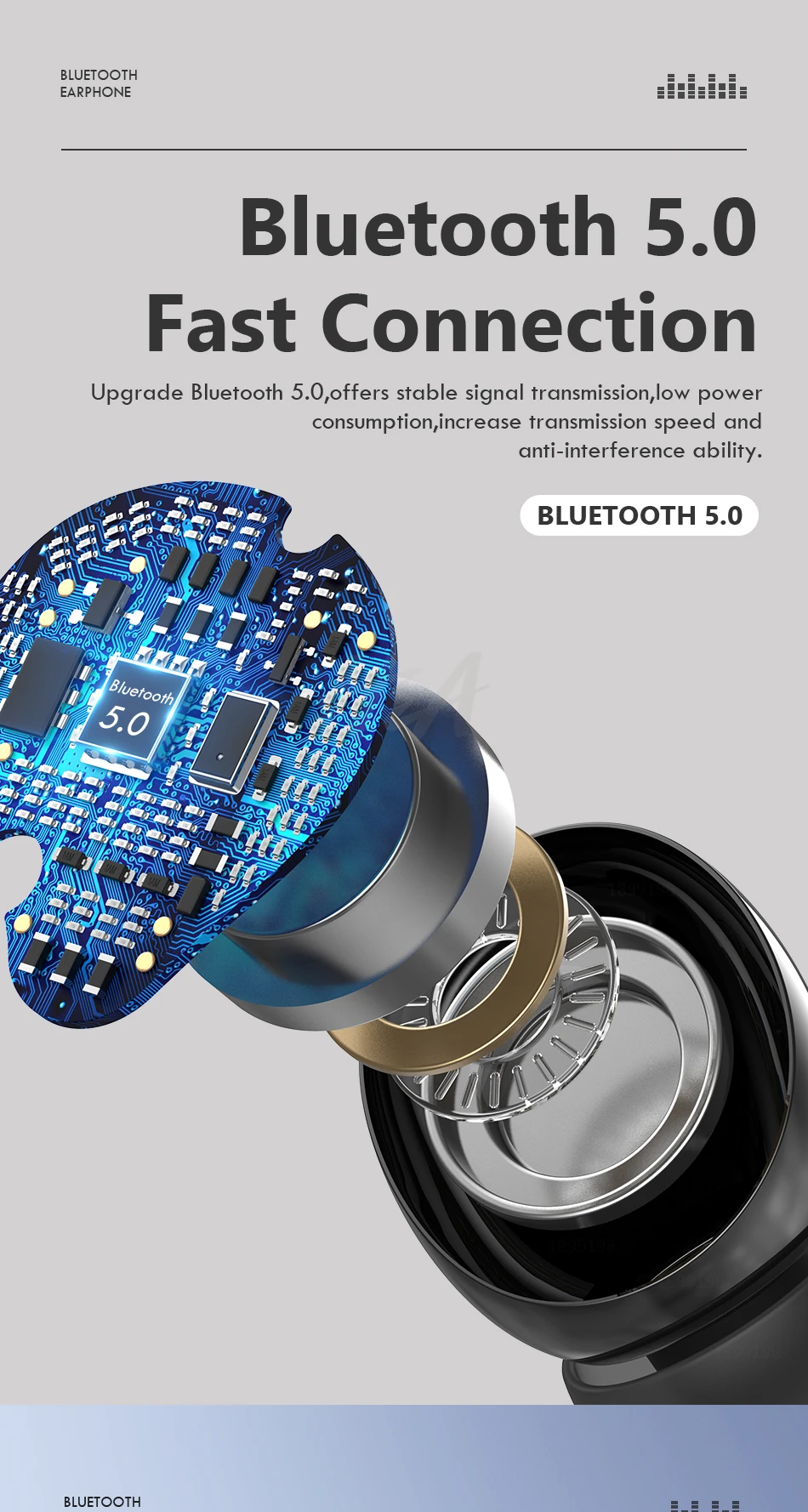 Мини Bluetooth наушники со светодиодным дисплеем питания 24 часа воспроизведения беспроводные наушники Bluetooth наушники с сенсорным управлением спортивные водонепроницаемые