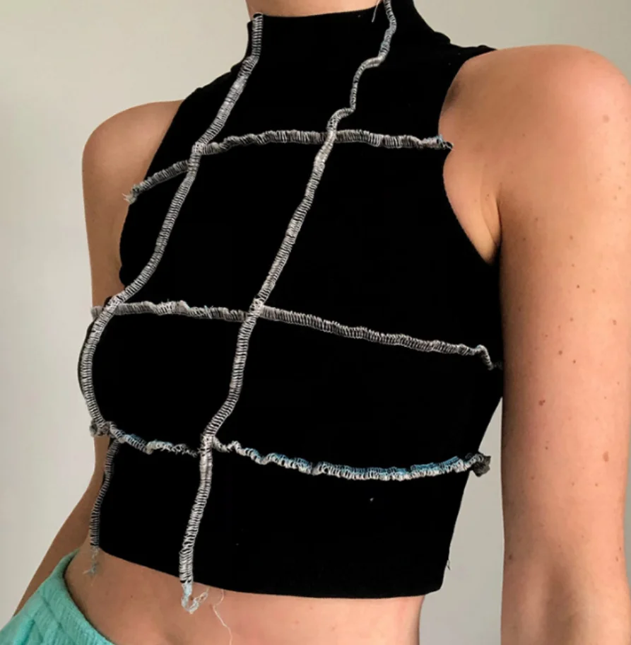 Женский топ с коротким рукавом, сексуальный, высокий, холодный, летний, без рукавов, контрастный цвет, сшитый топ с коротким рукавом, новый продукт