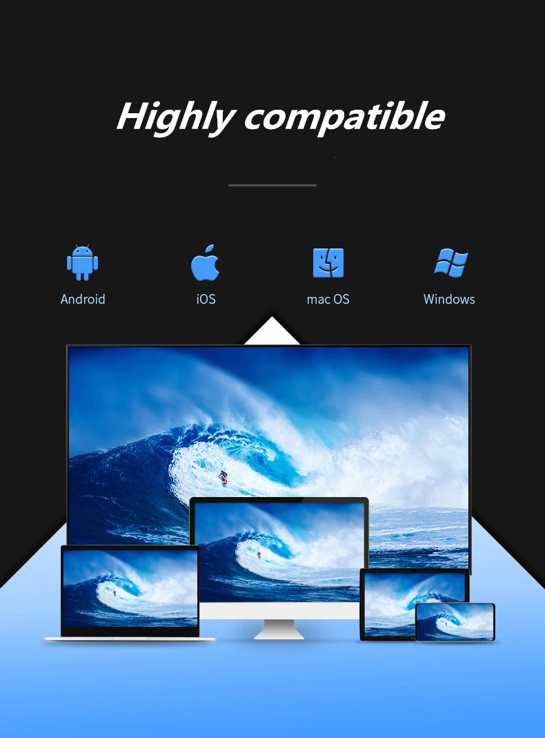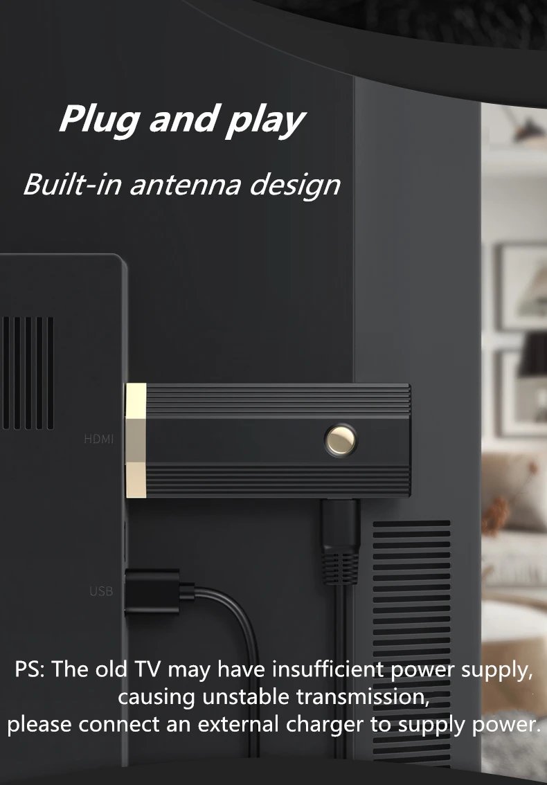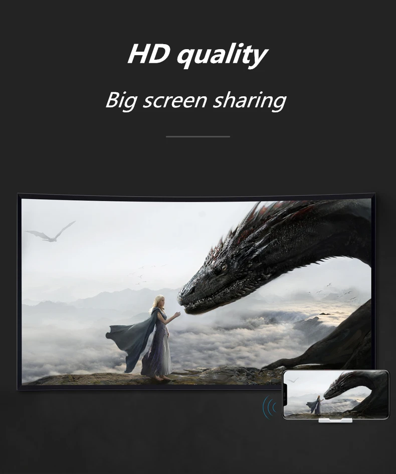 Скорость передачи данных: IOS,ANDROID,WINDOW8 Протокол передачи: Поддержка WiFi,DLNA, протокол Miracast Интерфейс: Выход AV: HDMI-совместим Тип разъема для зарядки: USB 1xmicro USB Высокое качество изображения, поддержка 1080P, изображение передачи деликатное.