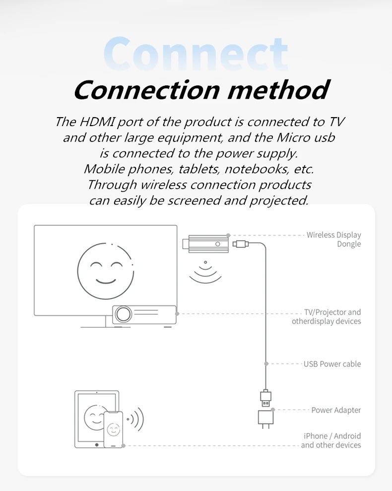 PS: пожалуйста, подтвердите, что ваши мобильные телефоны должны иметь функцию проекции мобильного телефона, затем можно использовать.