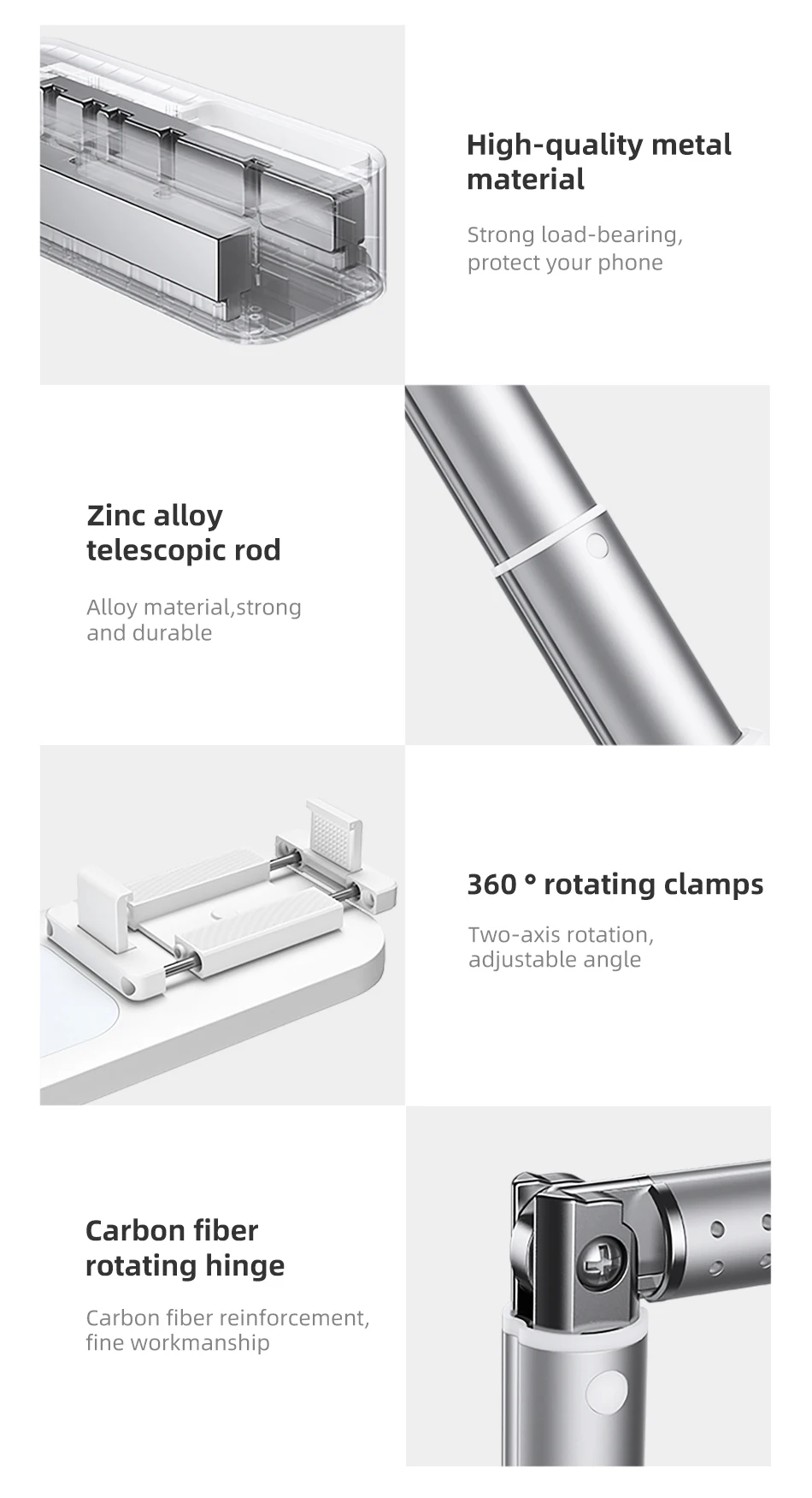 3. Вращающиеся на 360 ° зажимы, вращение на две оси, регулируемый угол.