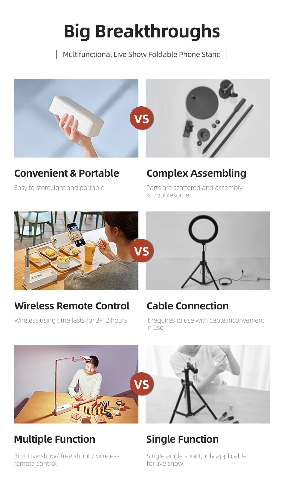 3. Несколько функций 3 в 1 Live show/free shoot Беспроводное дистанционное управление. VS Одиночная функция