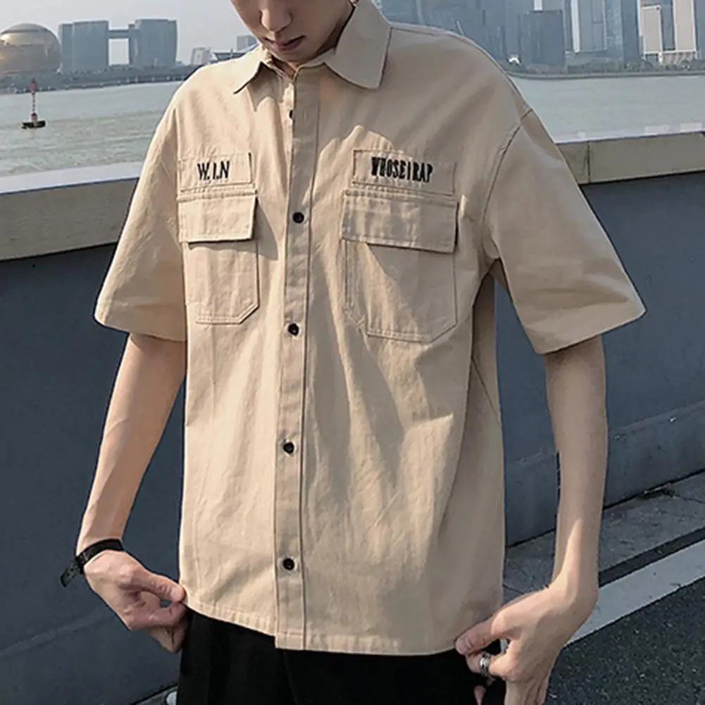 Рабочая Рубашка с коротким рукавом и отложным воротником, летняя мужская Повседневная Свободная рабочая одежда
