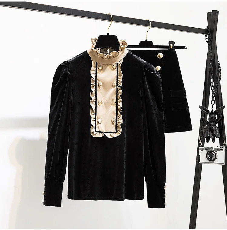 Осенний Женский комплект с буквенным принтом из двух предметов: топ V-образным
