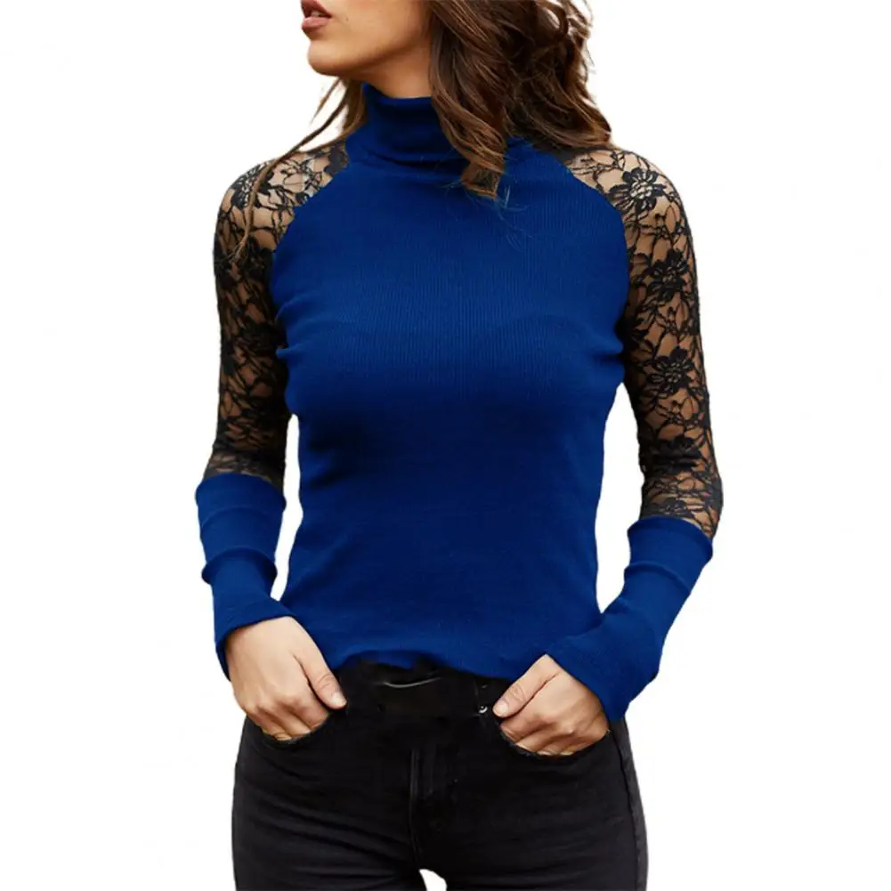 Женская блузка, сексуальная водолазка, кружевная строчка, Однотонная рубашка в полоску, женская блузка и одежда, Топ