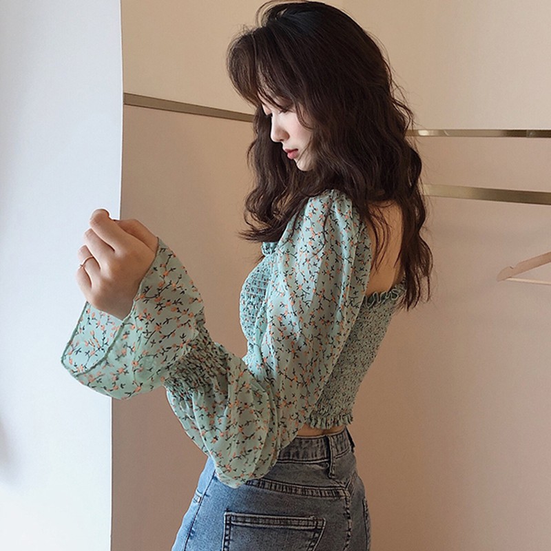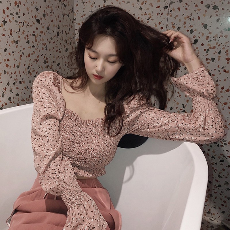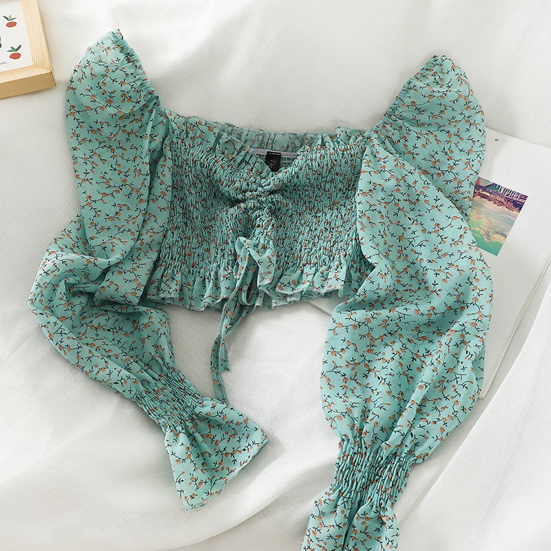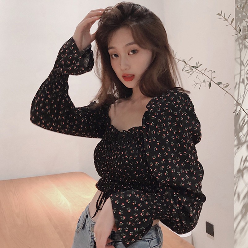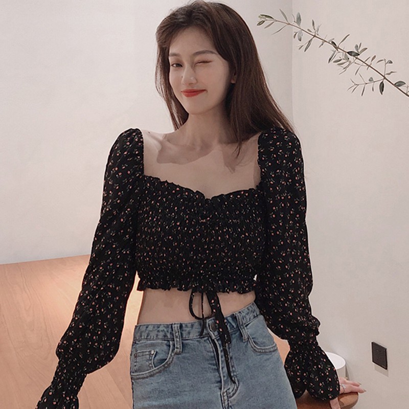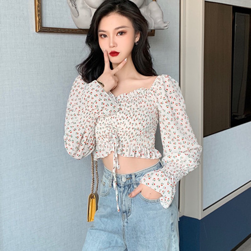 Особенности: квадратный воротник, сексуальный, милый, морщинистый, маленький цветочный, короткий, Топ
