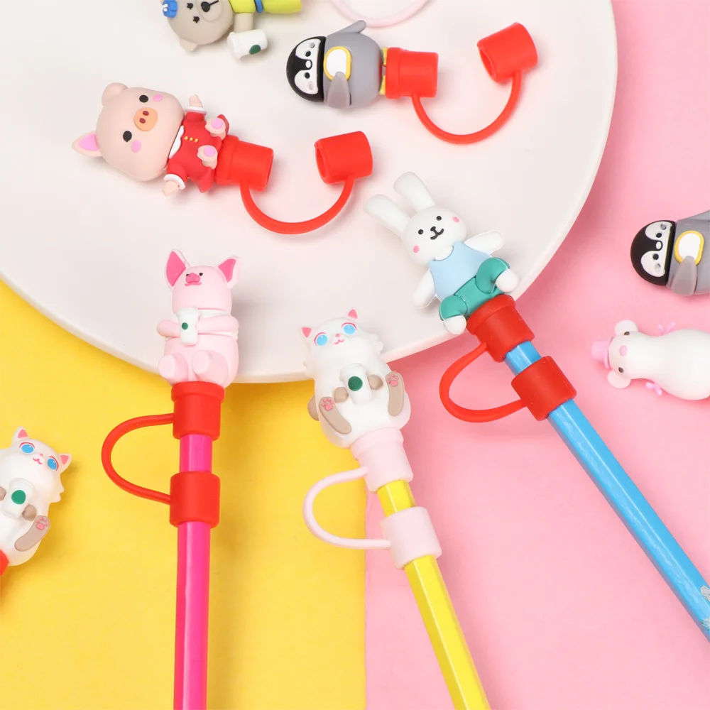 1PC Cute Reusable Silicone Straw Plug Creative Splash Proof Airtight Drinking Dust Cap Cartoon Plugs Cover Cup Accessories