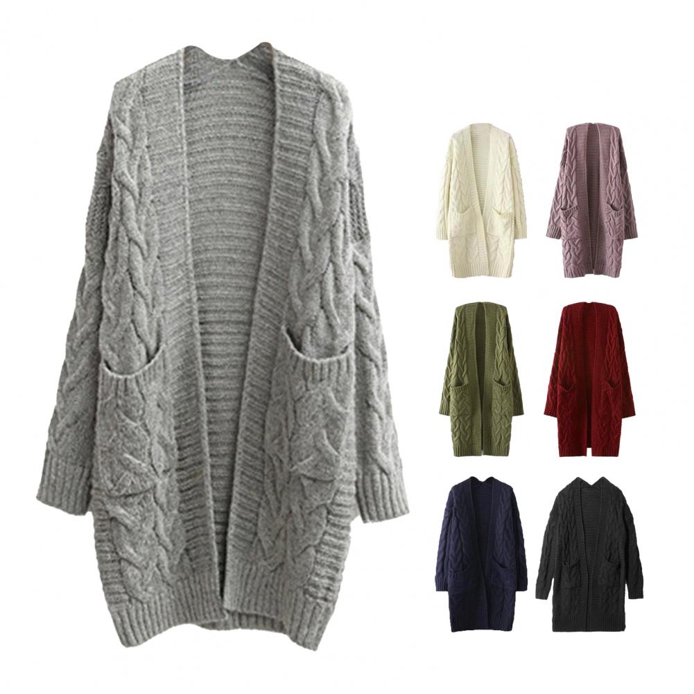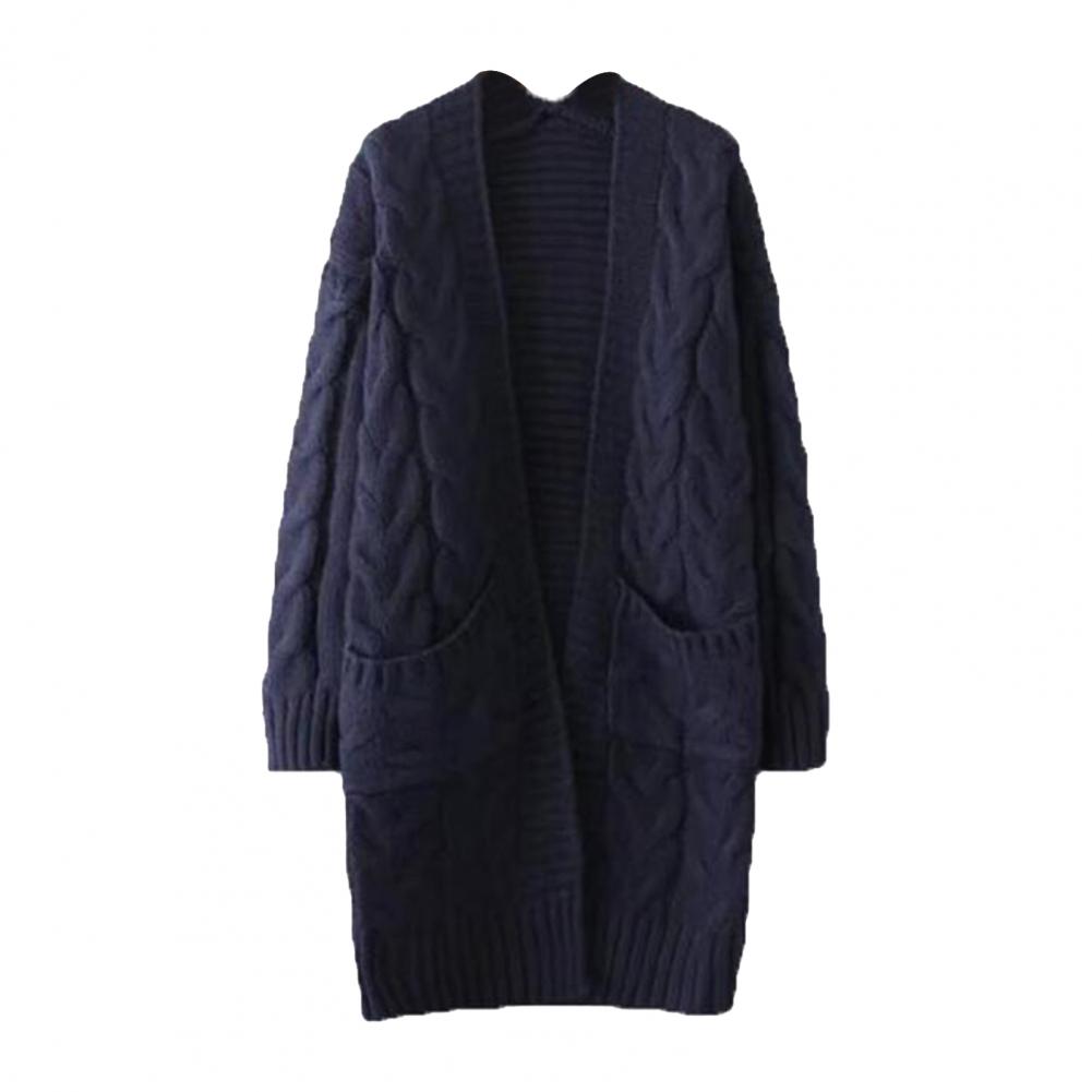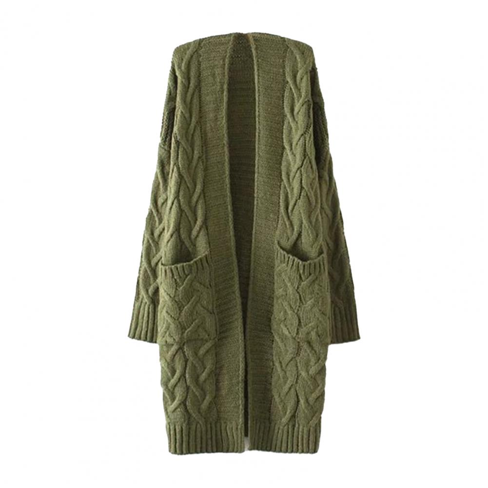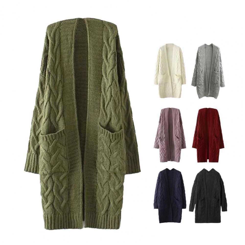 Женский осенне-зимний Свободный кардиган с карманами и длинным рукавом, трикотажное пальто средней длины, вязаный кардиган