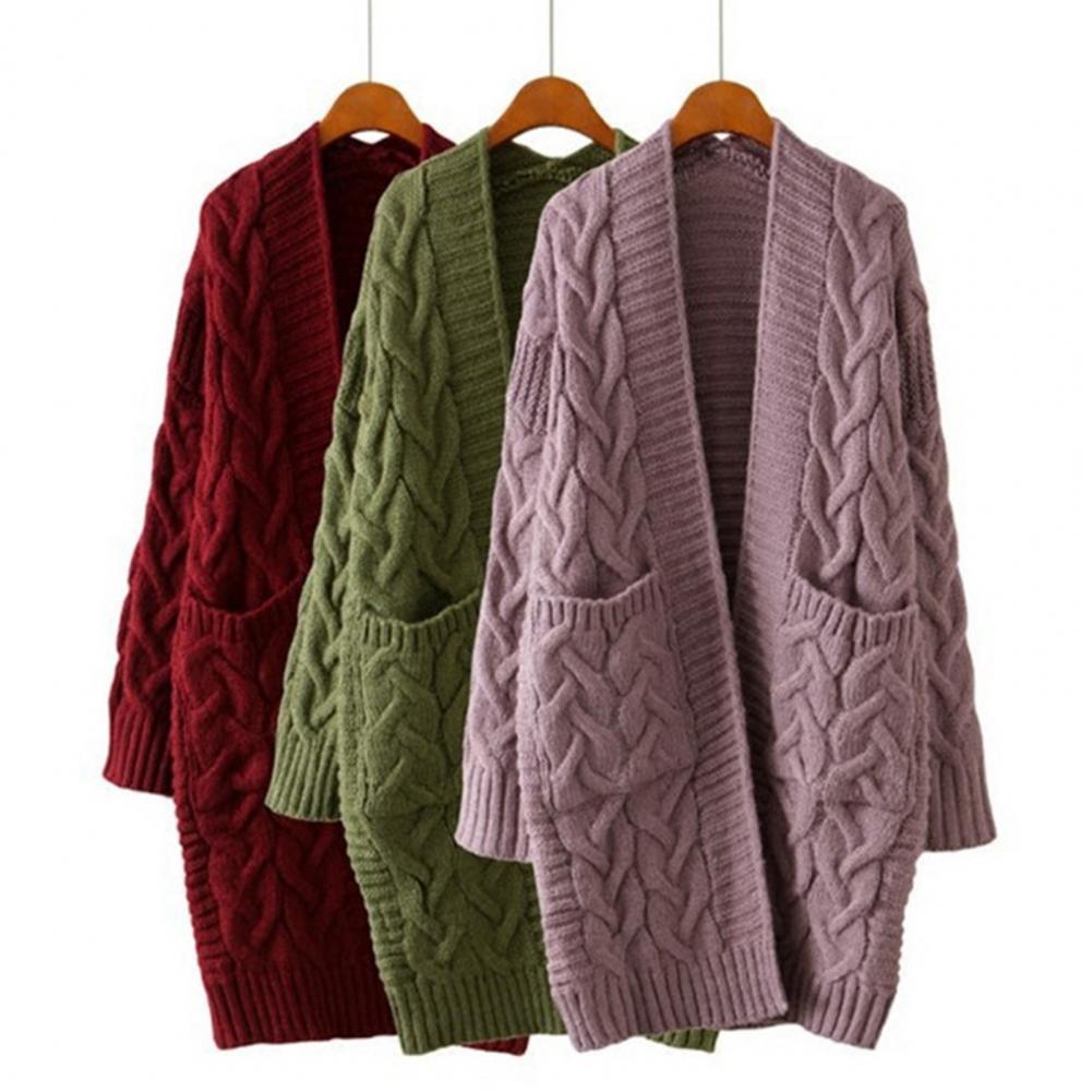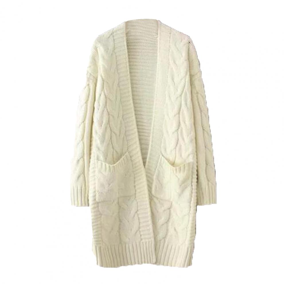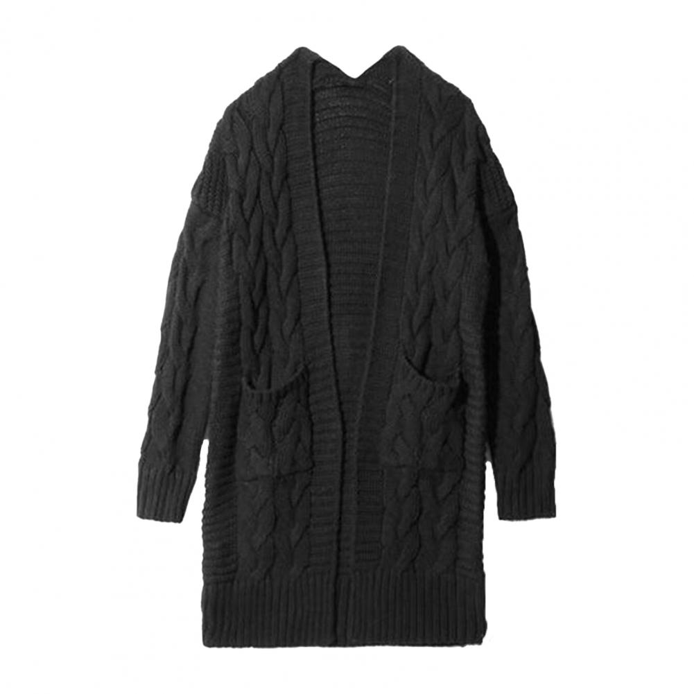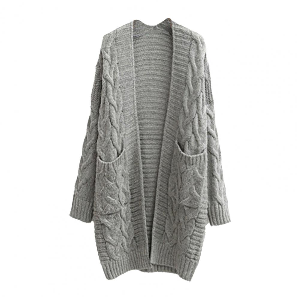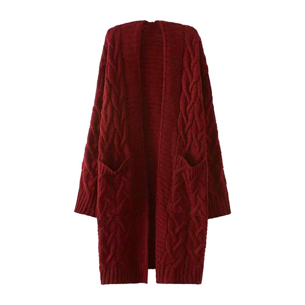 Женский осенне-зимний Свободный кардиган с карманами и длинным рукавом, трикотажное пальто средней длины, вязаный кардиган