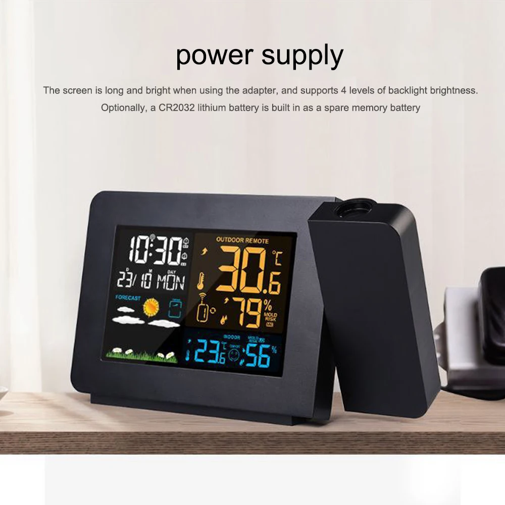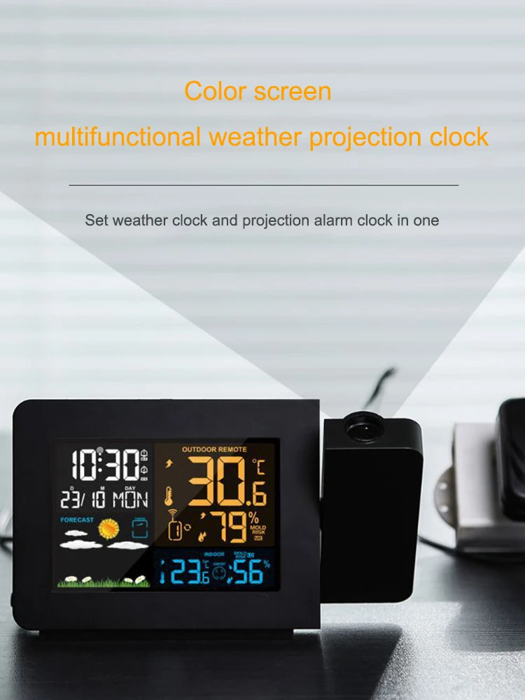 Наши проекционные часы с внутренней и наружной температурой прогнозируют погодные тенденции в зависимости от наружной температуры и влажности, что упрощает повседневную жизнь, позволяет выбрать лучшую одежду и решать, взять Зонт с собой. Яркость экрана можно регулировать.