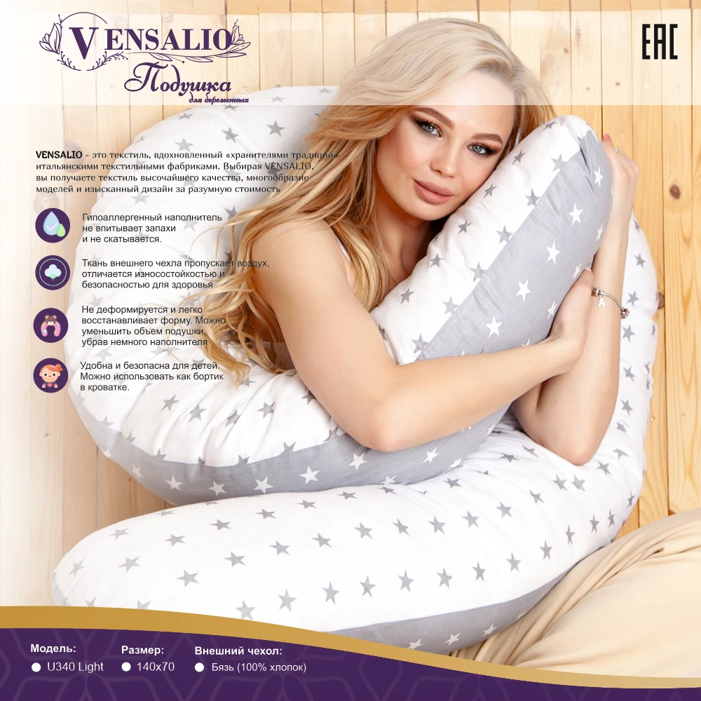Подушка для беременных Vensalio U340 Light 140х70 с чехлом;