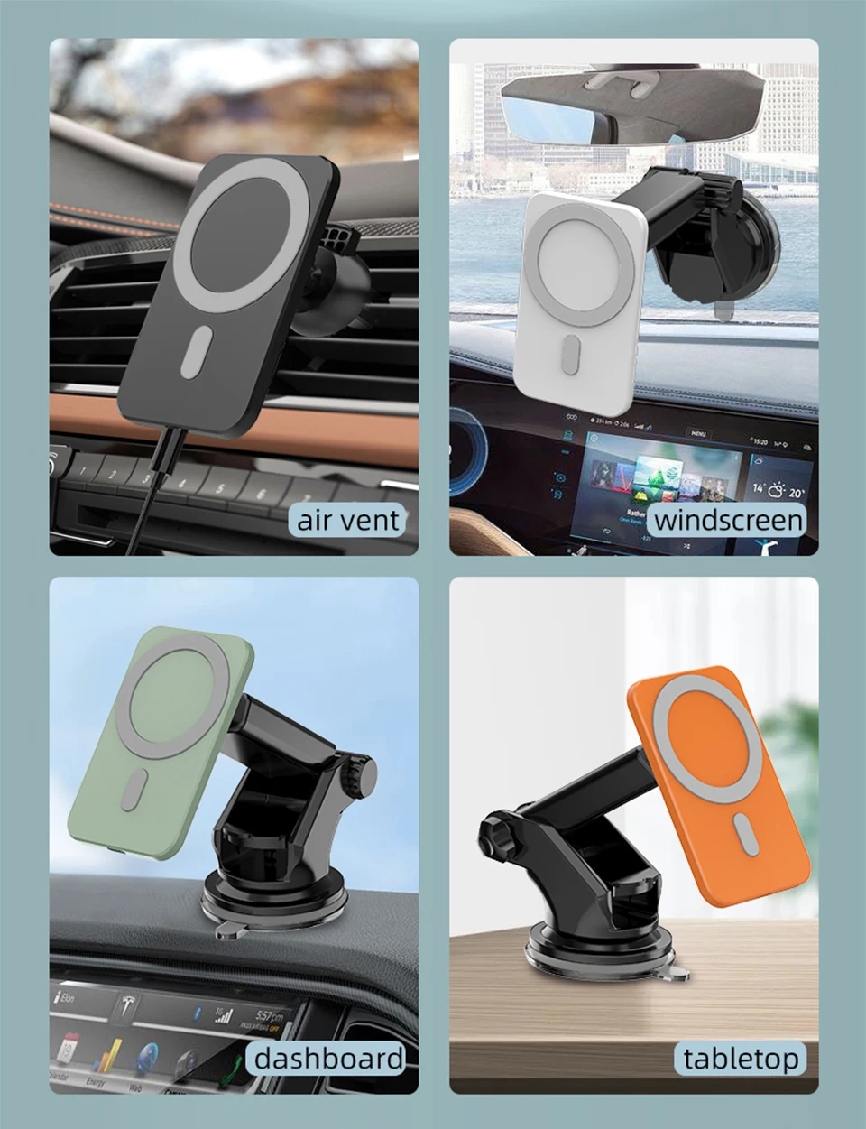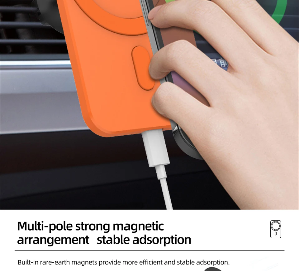 * [Магнитное беспроводное автомобильное зарядное устройство]-ABS + вулканизированный силикагель, встроенный Магнит не отпадет мобильный телефон, во время зарядки во время навигации, его также можно использовать как мобильный телефон-держатель.