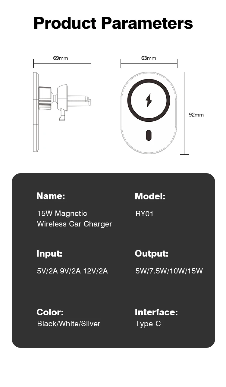15 Вт магнитное беспроводное автомобильное зарядное устройство