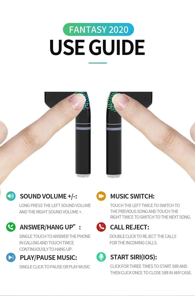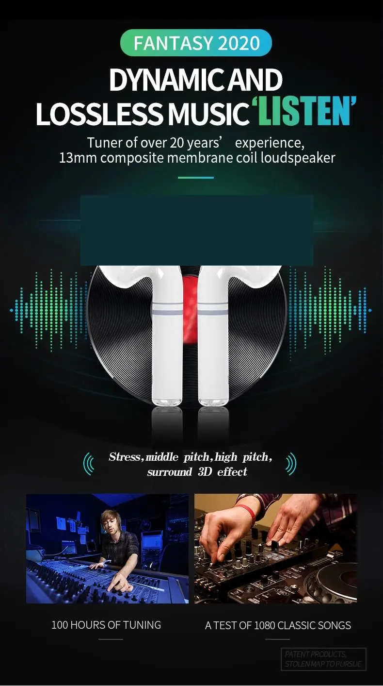 Фантазия 2020 Bluetooth 5,0 беспроводные наушники HiFi стерео сенсорный наушник водонепроницаемый TWS игровая гарнитура для пользовательских фотографий DIY