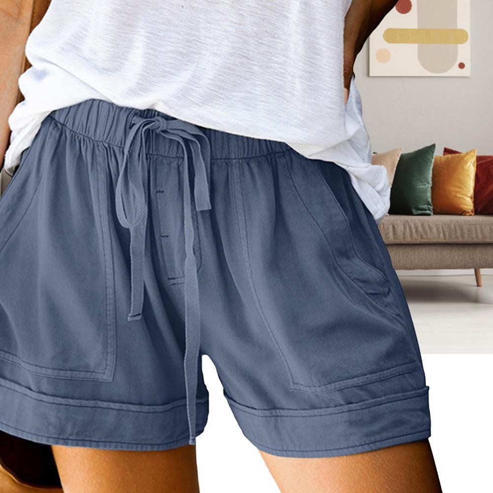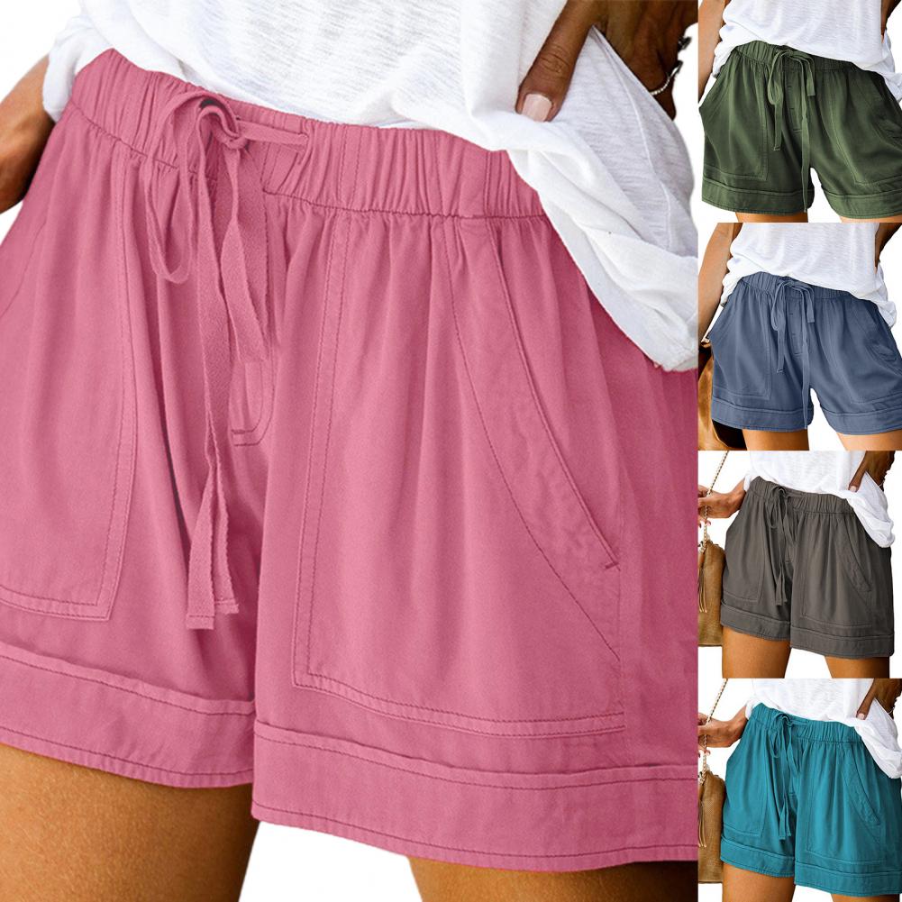 Женские шорты с эластичной резинкой на талии, Свободные мини-шорты с карманами для пляжа