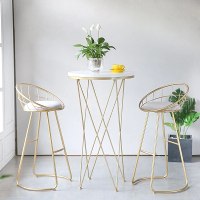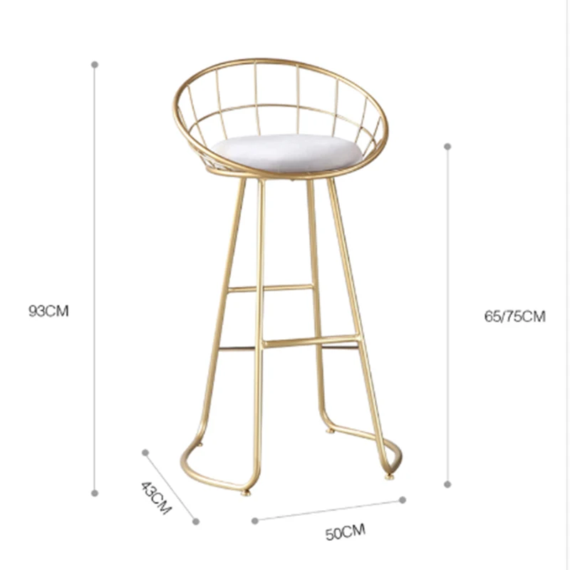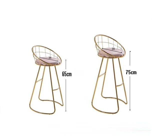 Барные стулья для дома, скандинавский золотой стул со спинкой, Современная железная мебель, простой стул с высокой ногой для макияжа, мягкий мешок, Туалетные стулья