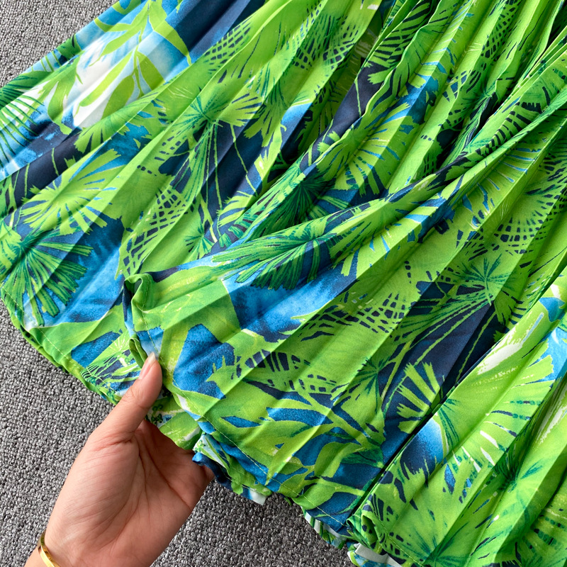 Комплект из 2 предметов, укороченный топ и длинная юбка, женское платье, летнее Плиссированное длинное платье с цветочным принтом, праздничное пляжное макси-платье в стиле бохо, сарафан
