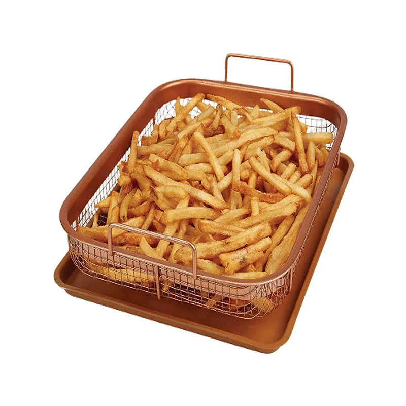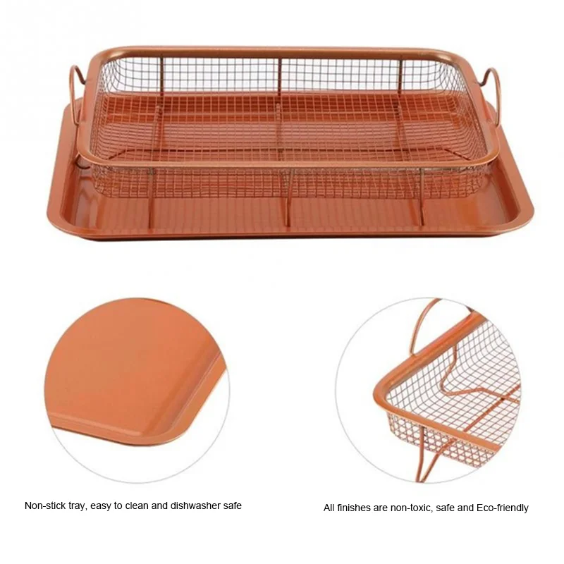Copper Baking Tray with Removable Cooling Rack Set Oil Frying Baking Pan Oven Pan Non-stick Chips Basket Grill Mesh Kitchen Tool