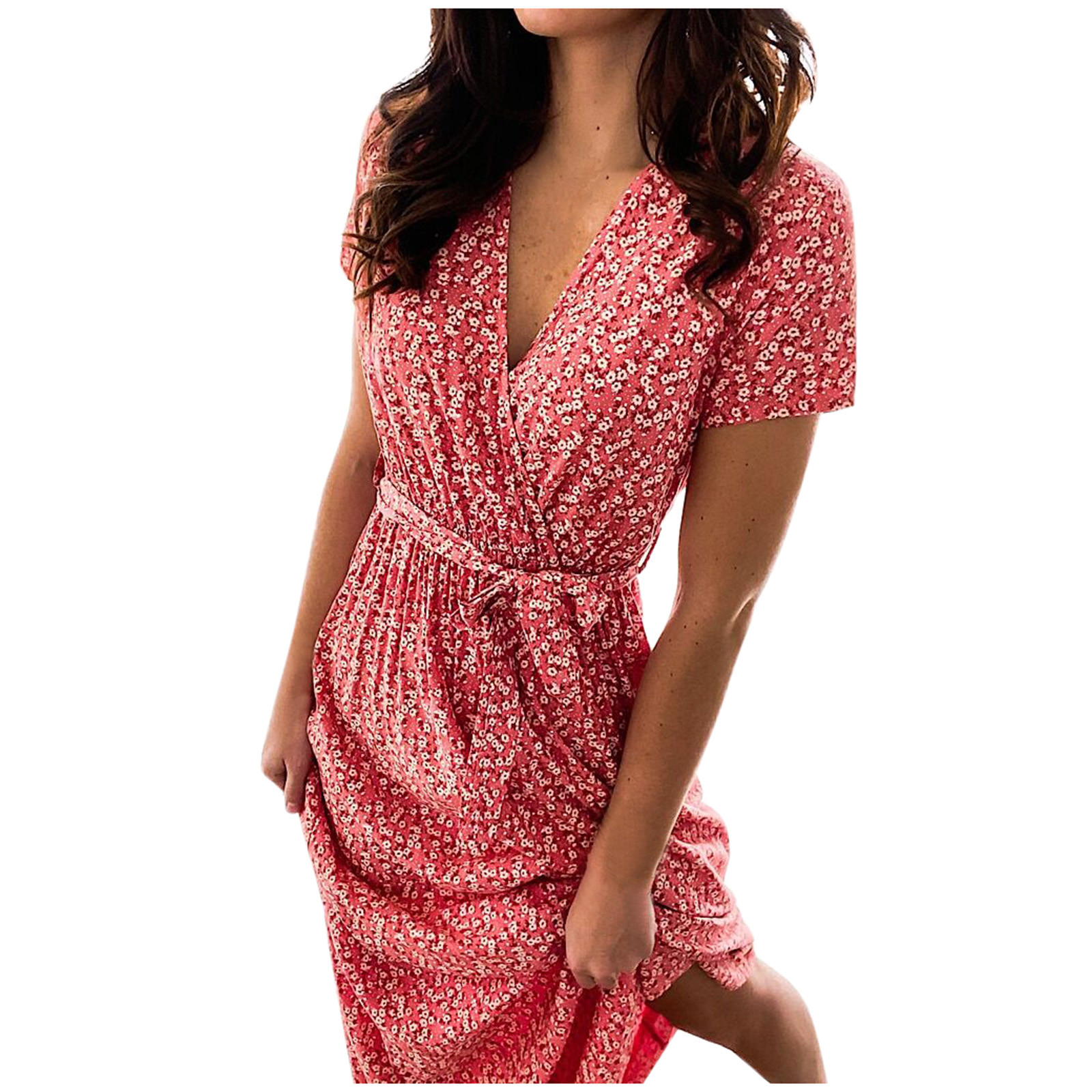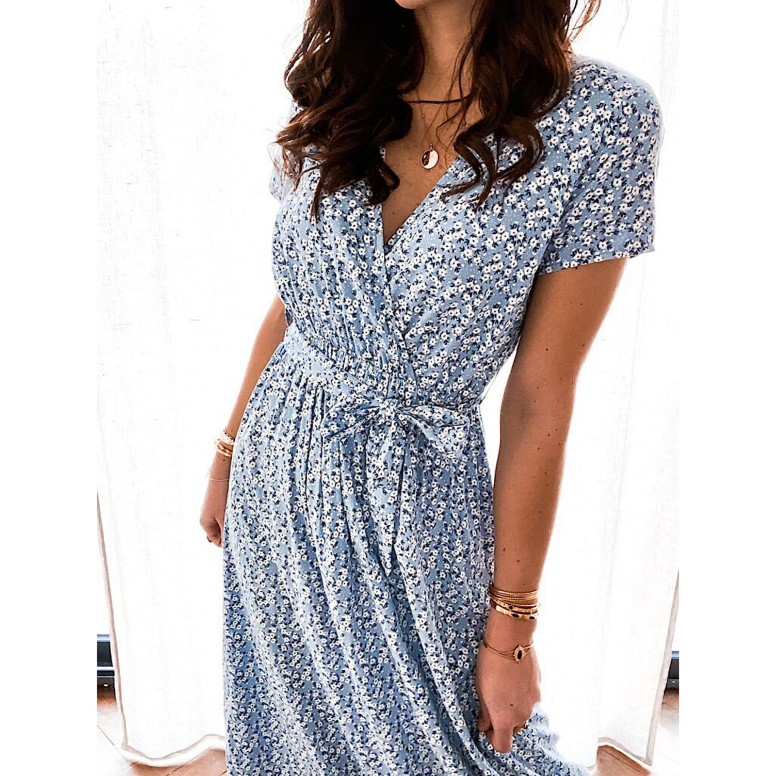 Женское летнее богемное Повседневное платье макси с цветочным принтом, коктейльное пляжное платье, сарафан