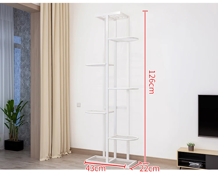 [Простой стиль] 43x22x126 см/17x9x49,6 дюймов, 7 полок с 8 держатель для цветочного горшка. Минималистичный стиль подходит для большинства домашних украшений.