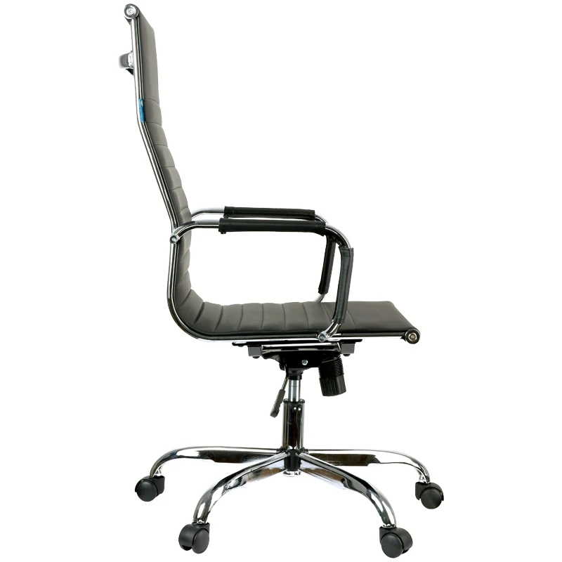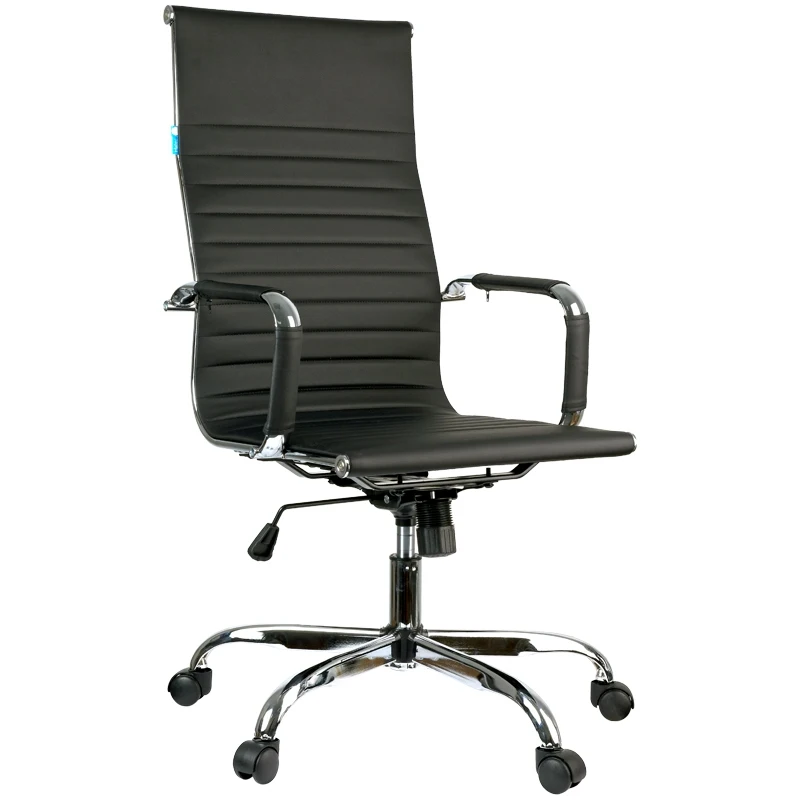 Ультратонкое кресло в стиле Hi-Tech на монолитном анатомичном каркасе, выделяющееся броскими хромированными элементами и стильной отстрочкой.