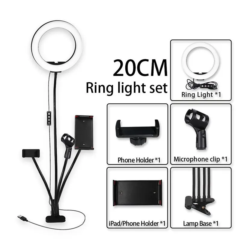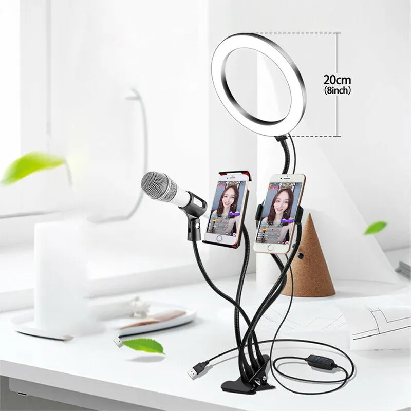 8 дюймов кольцевая лампа с поддерживающей подставкой из ТПУ и пластика штатив совместимый для макияжа мобильного телефона в реальном времени студийная лампа смарт-подставка-держатель для сотового телефона штатив-ТриподUS $23,38