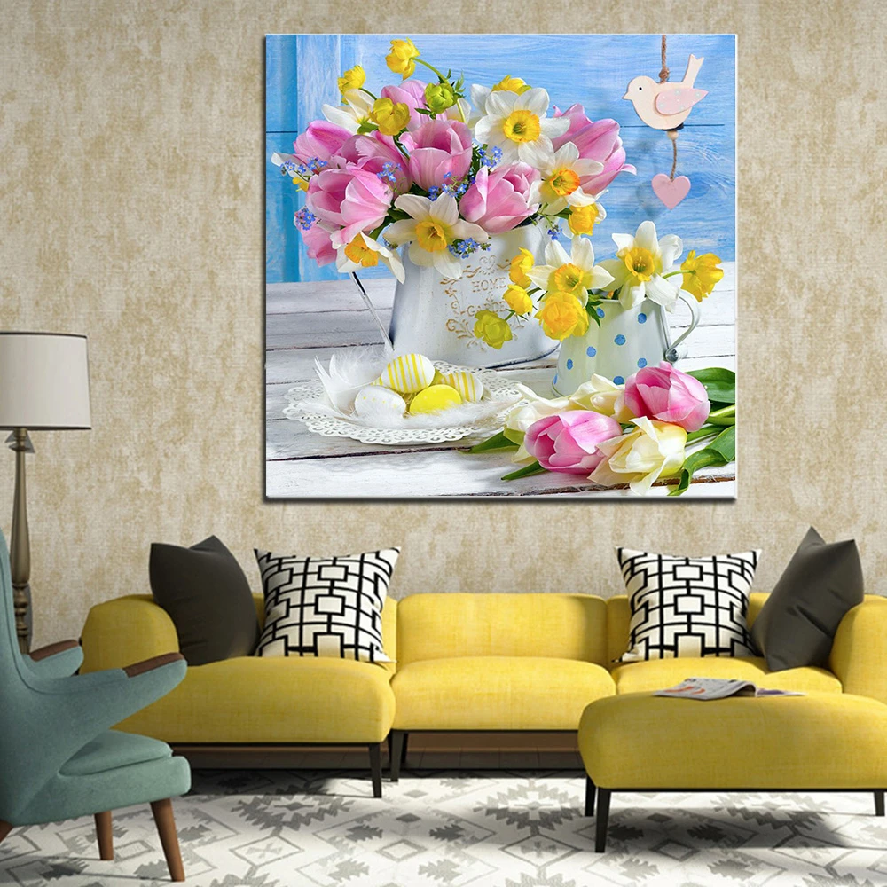 Diamond Painting Vase Flowers Cross Stitch 5D Diy Home Decoration Mosaic Carnation Wall Stickers Square/Round | Дом и сад