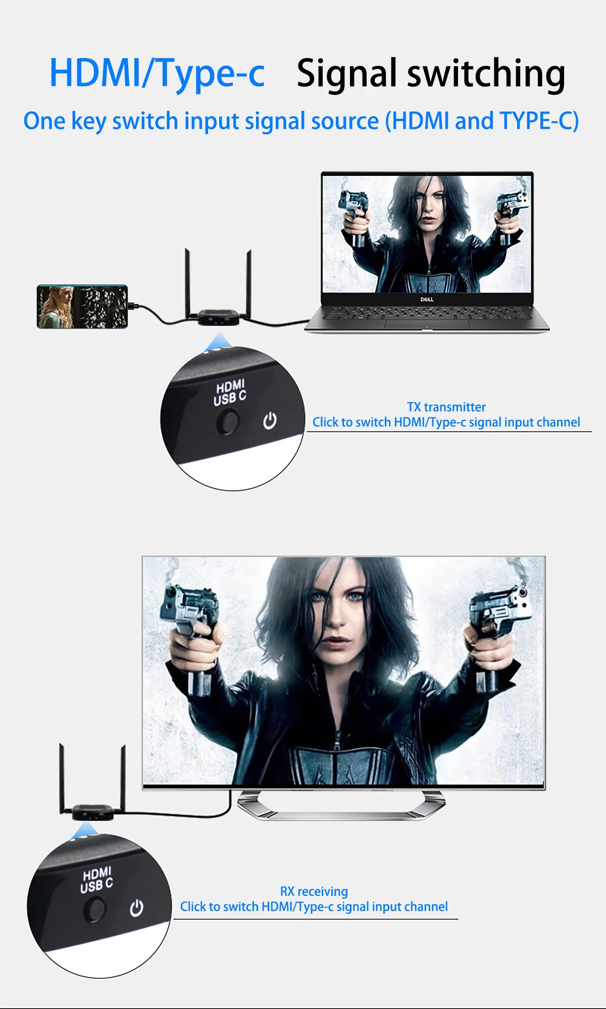 Этот беспроводной удлинитель HDMI использует беспроводной модуль 5,8G, который передает аудио и видео сигналы высокой четкости через стандарт сжатия H.264. Он может передавать до 200 метров в открытой среде. Устройство обладает отличными возможностями обработки изображений и передачи, что делает передачу сигнала более гладкой и стабильной. Это экономичный способ для беспроводного удлинителя сигналов HDMI. Он широко используется в офисных презентациях, лекциях, обучении, конференц-залах, домашних развлекательных мероприятиях и т. д.
