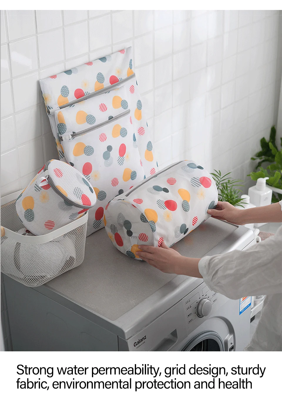 6 размеров, с принтом, на молнии, Сетчатая Сумка для белья, полиэстер, сумка для стирки, нижнее белье, бюстгальтер, носки, грязная одежда, органайзер, корзина для белья