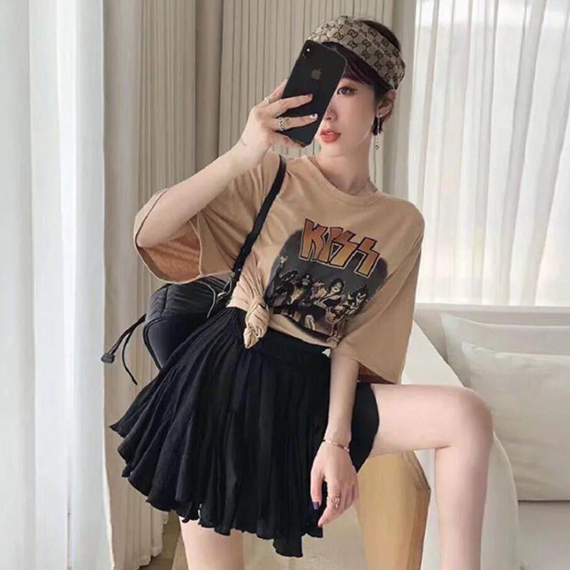 Юбка женская плиссированная с вышивкой крестиком высокой талией - купить по